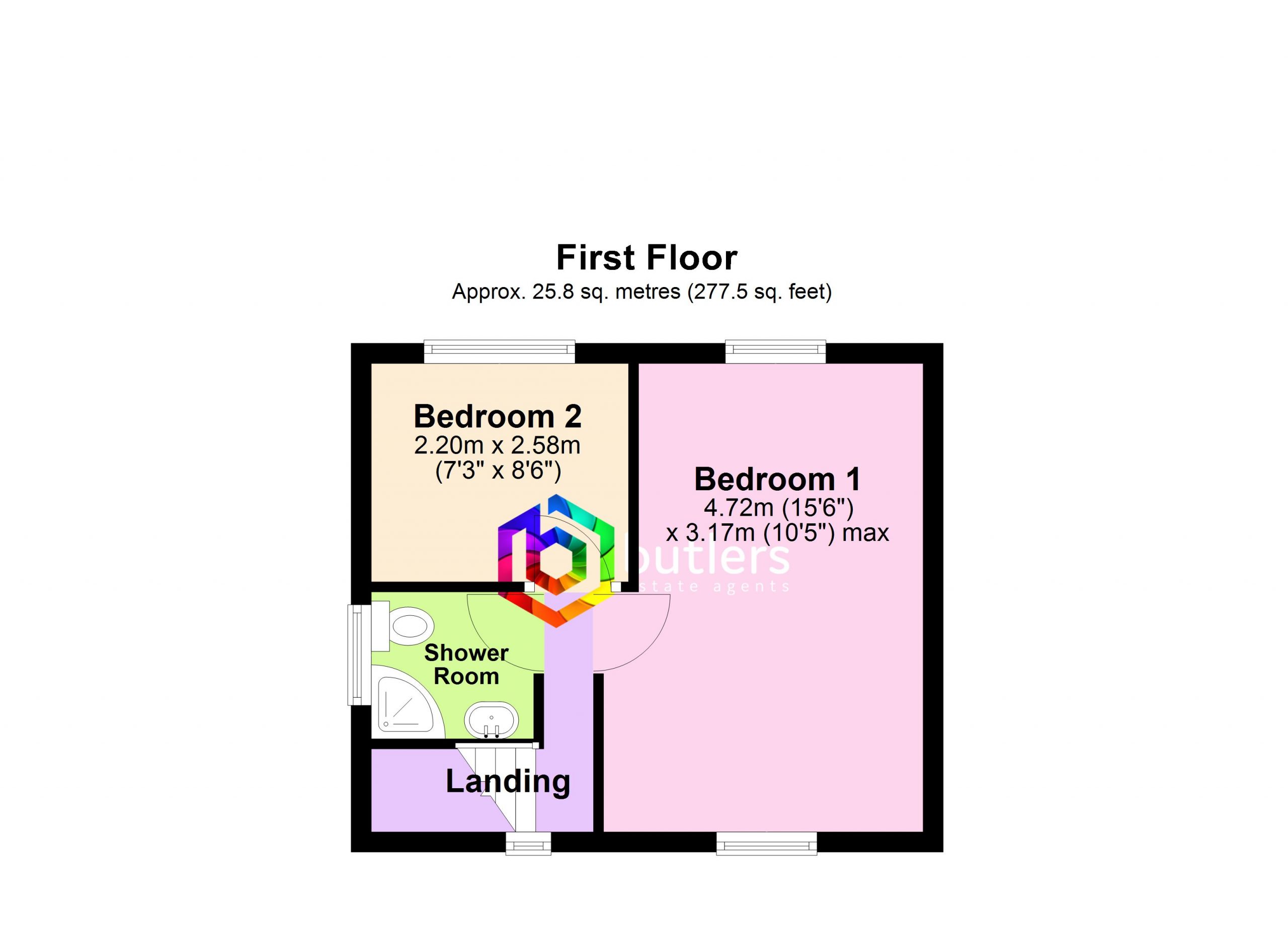 Bedroom Two 7' 3" x 8' 6" (2.20m x 2.58m)