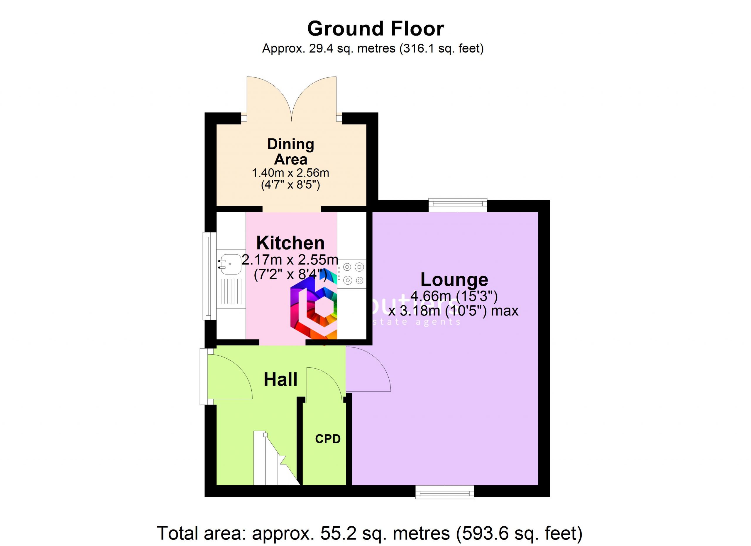 Dining Area 4' 7" x 8' 5" (1.40m x 2.56m)