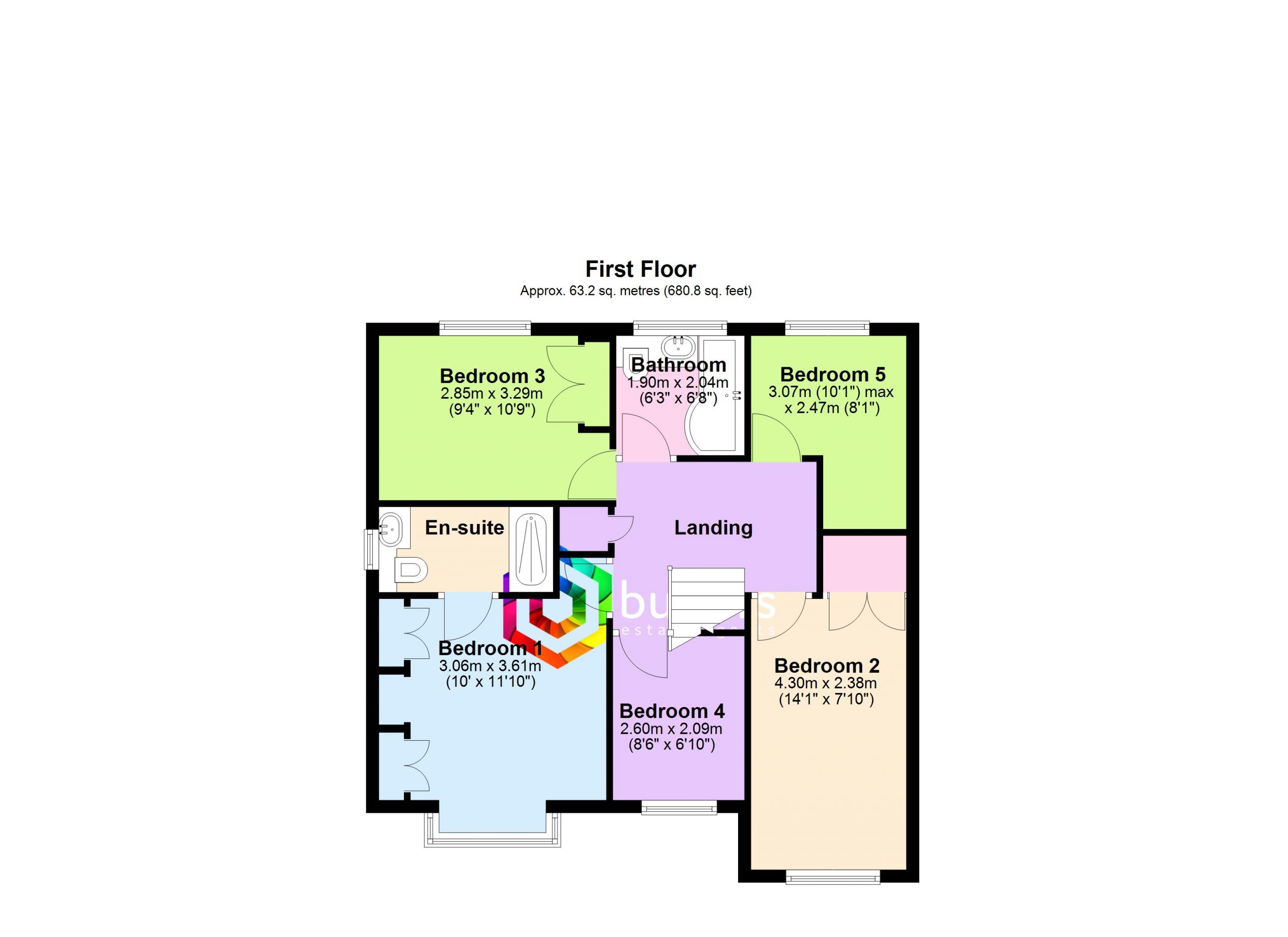 With fitted wardrobes to one side of the room, the bay window provides natural lighting to the room. There is access to the En-Suite and the landing.