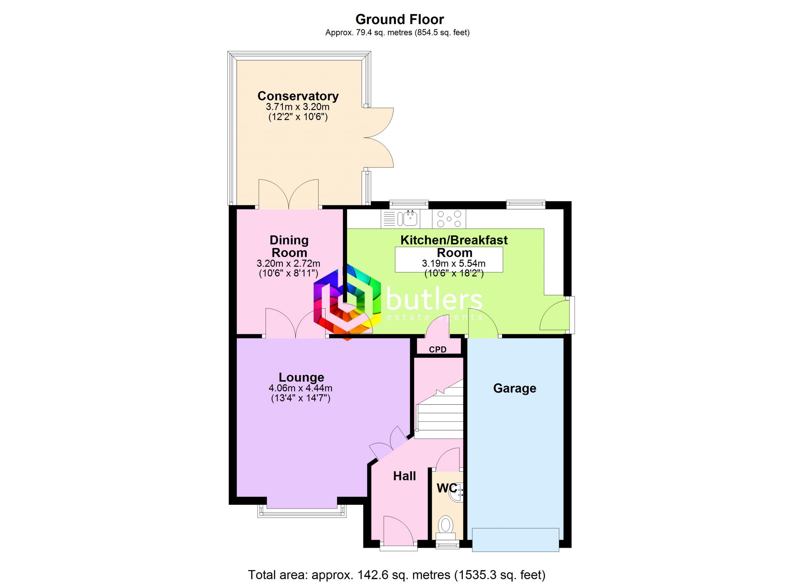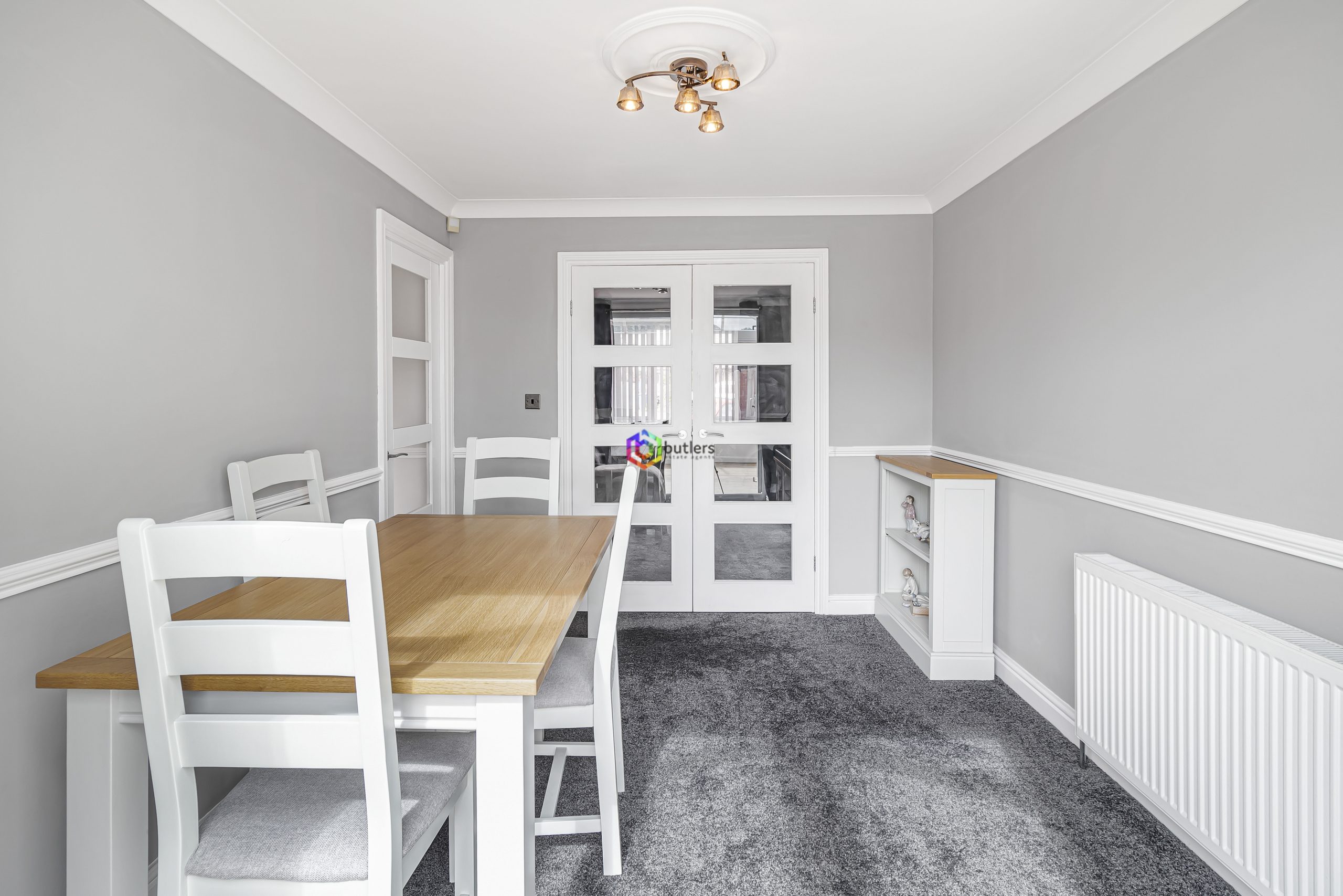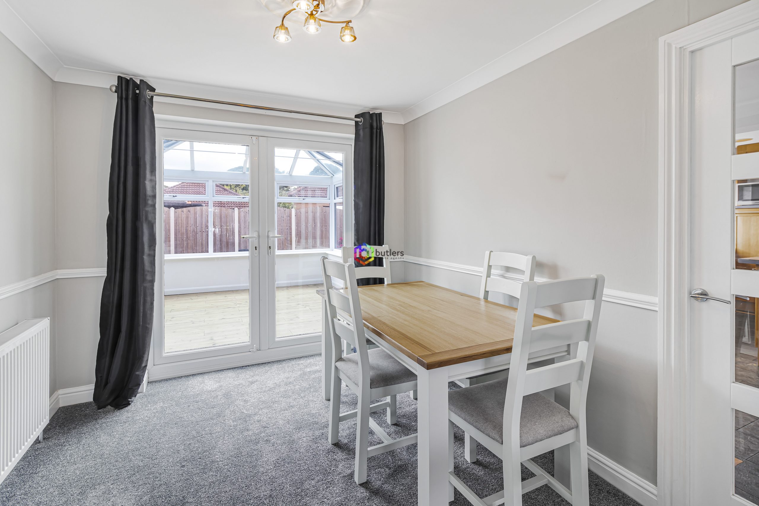 Modern decor with a new grey carpet complements this formal dining room with twin doors to the attached conservatory, twin doors to the lounge and a single door to the kitchen. There is an opportunity to knock through to the kitchen, subject to necessary permissions.