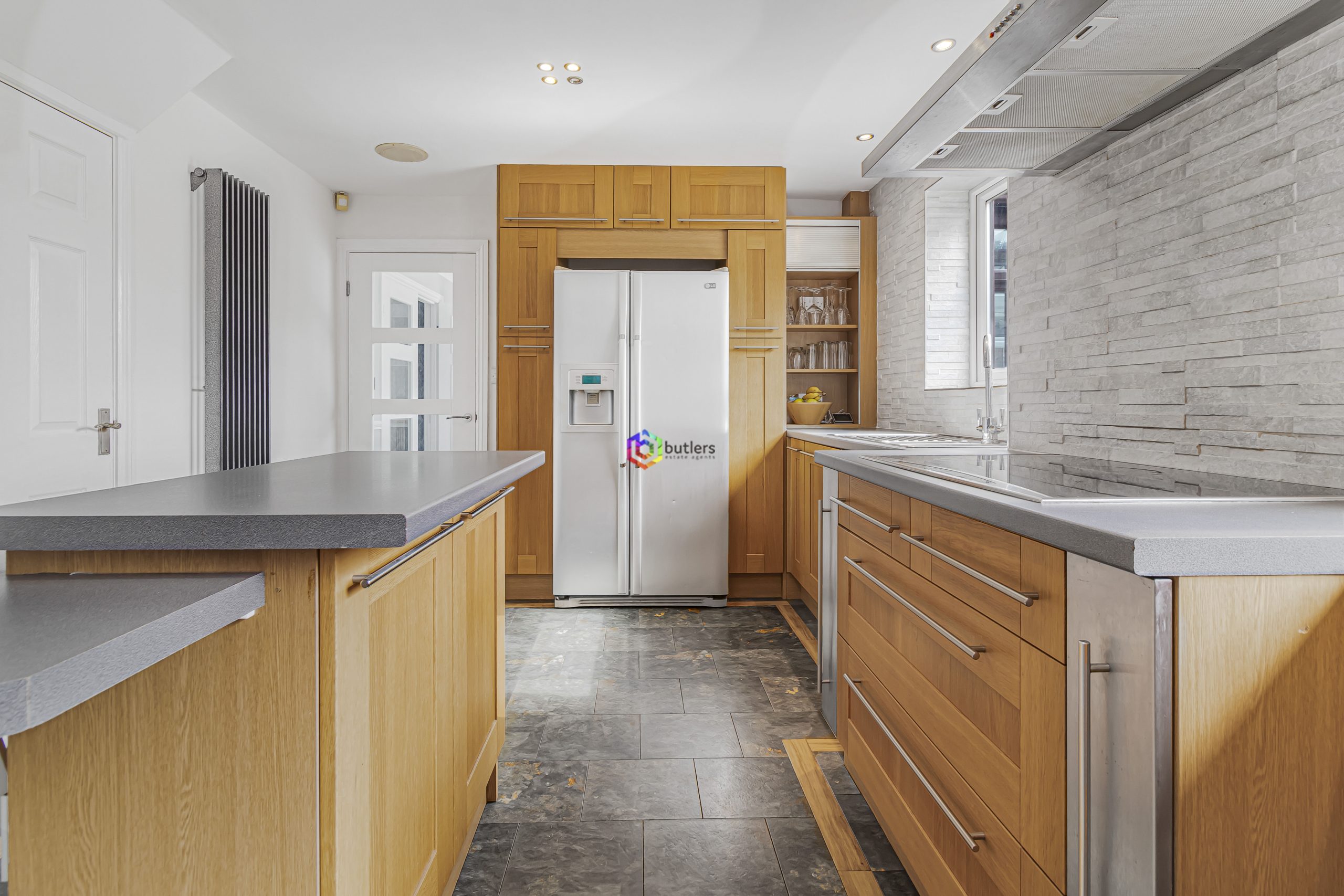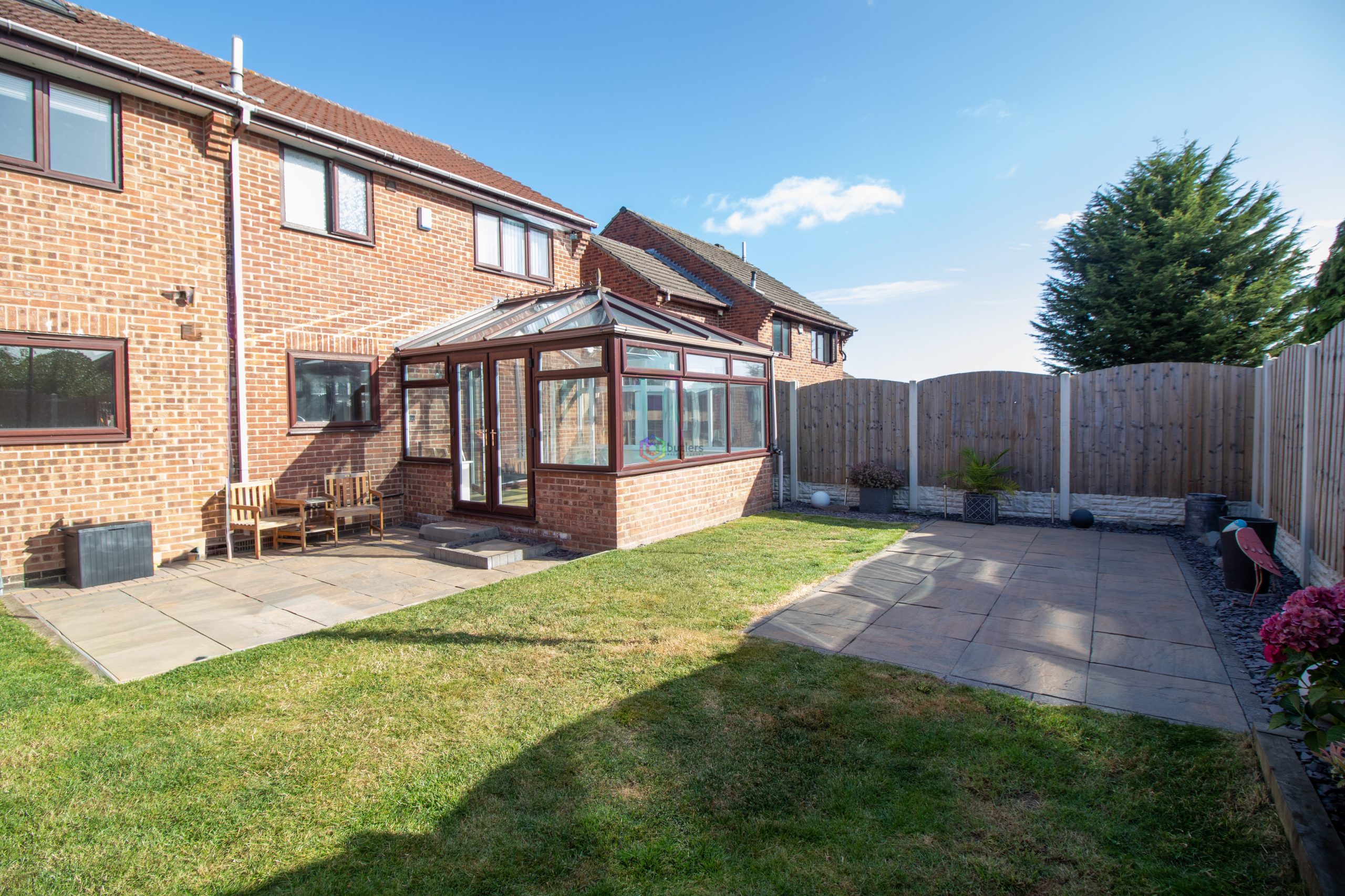 A standout feature of this home is the large conservatory with a sleek glass roof, flooding the space with natural light and offering an ideal spot for relaxation or socialising. The property also includes a garage and a block paved driveway with ample space for at least two cars, catering to the practical needs of modern living.