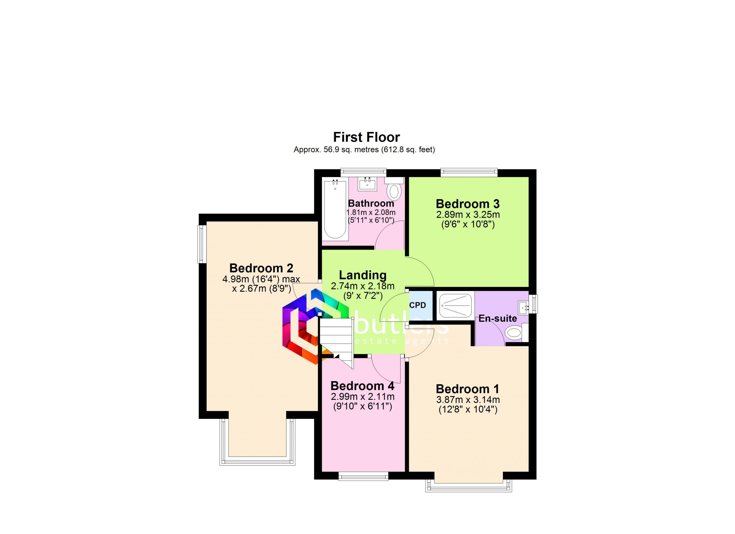 Bedroom Four 9' 10" x 6' 11" (2.99m x 2.11m)