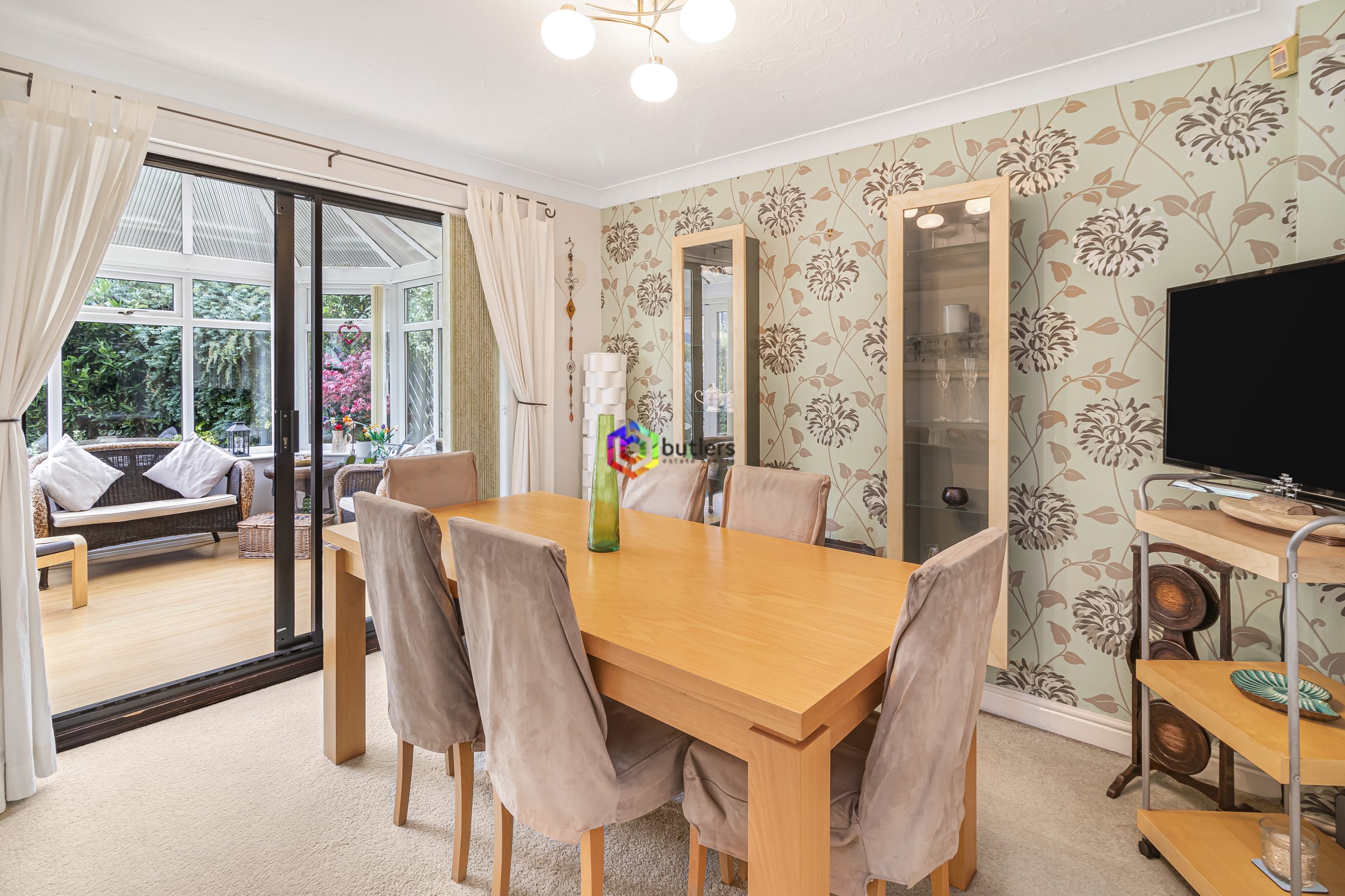 A formal dining area adjacent to the kitchen and also providing access to the lounge. A large patio sliding door opens into the conservatory.
