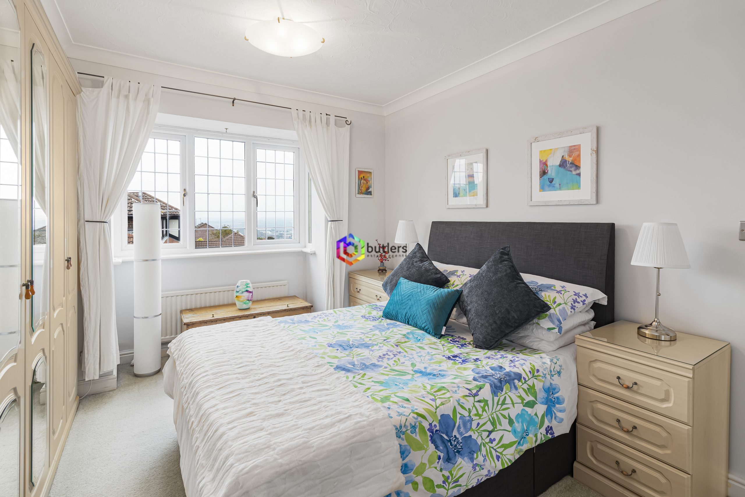 Fitted with light wood built in wardrobes to one wall and a front facing window providing views over the surrounding area, a lovely generous space to unwind. A door leads to the modern en-suite.