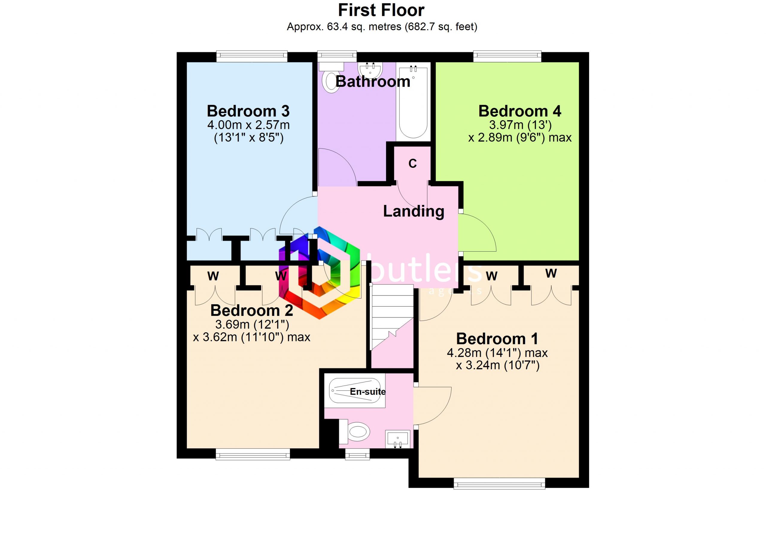 Bedroom Four 13' 0" x 9' 6" (3.97m x 2.89m)