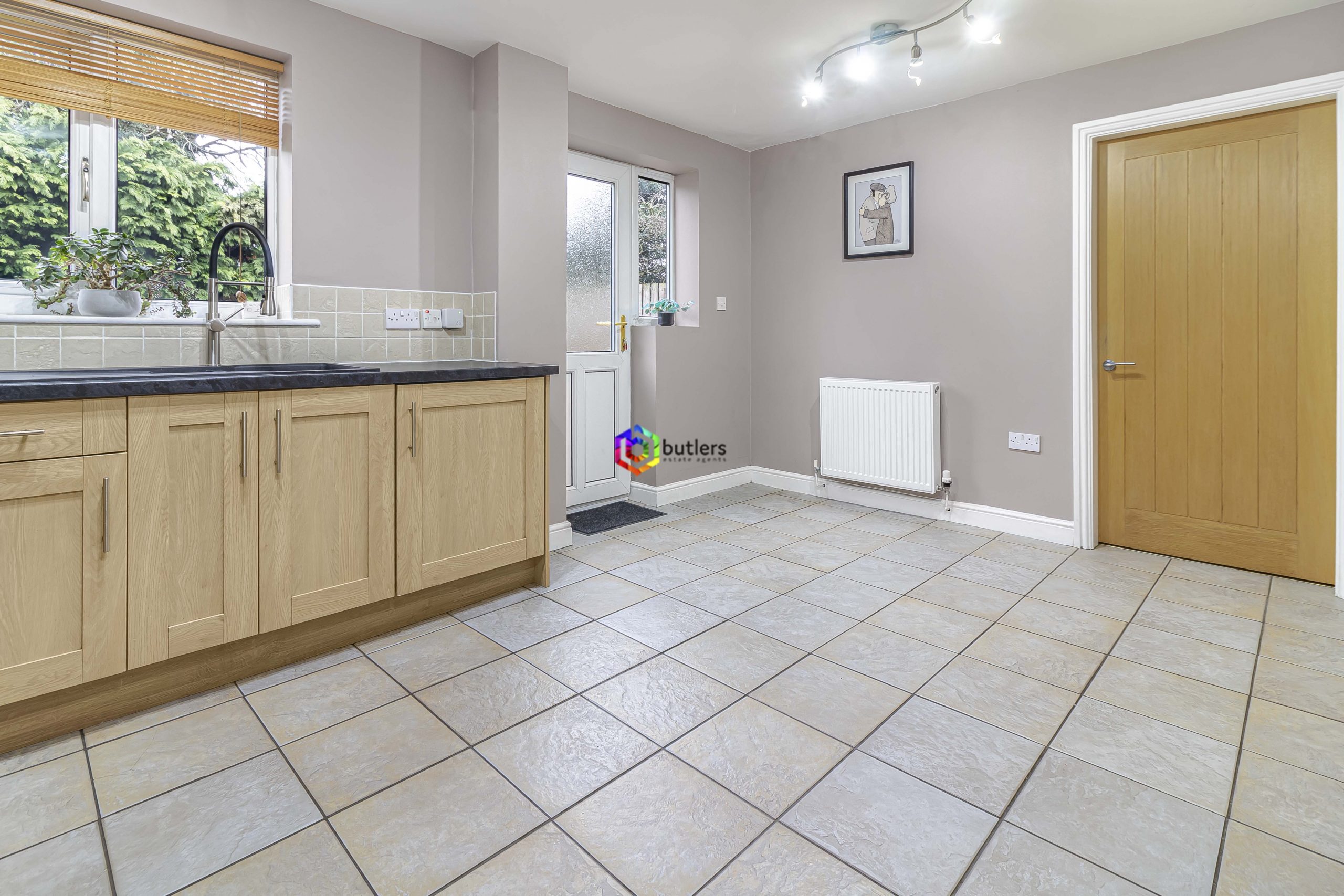 The well-appointed kitchen and breakfast room boasts ample storage units and generous worktop space, with plenty of room for a table and chairs set, making it perfect for informal family dining.