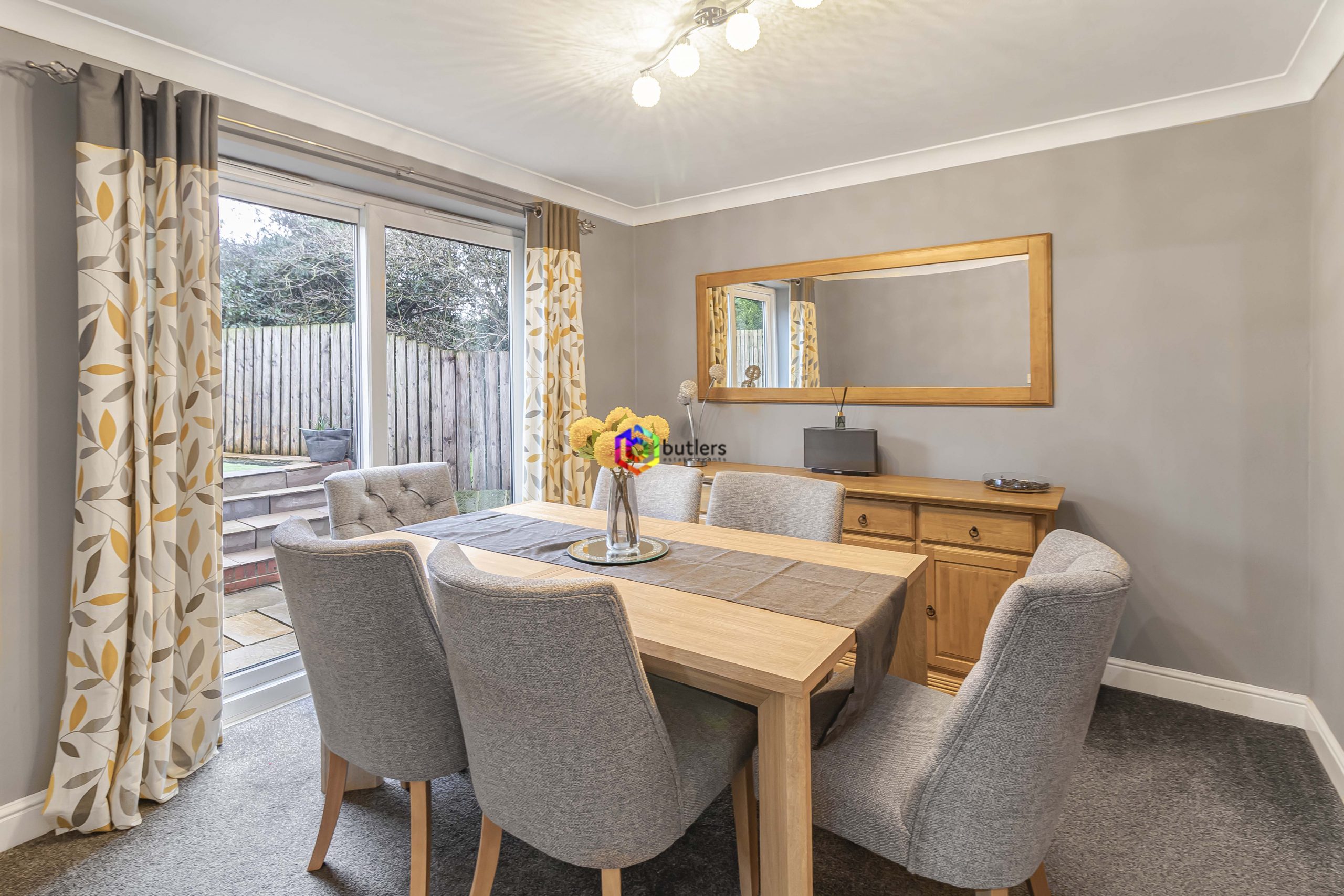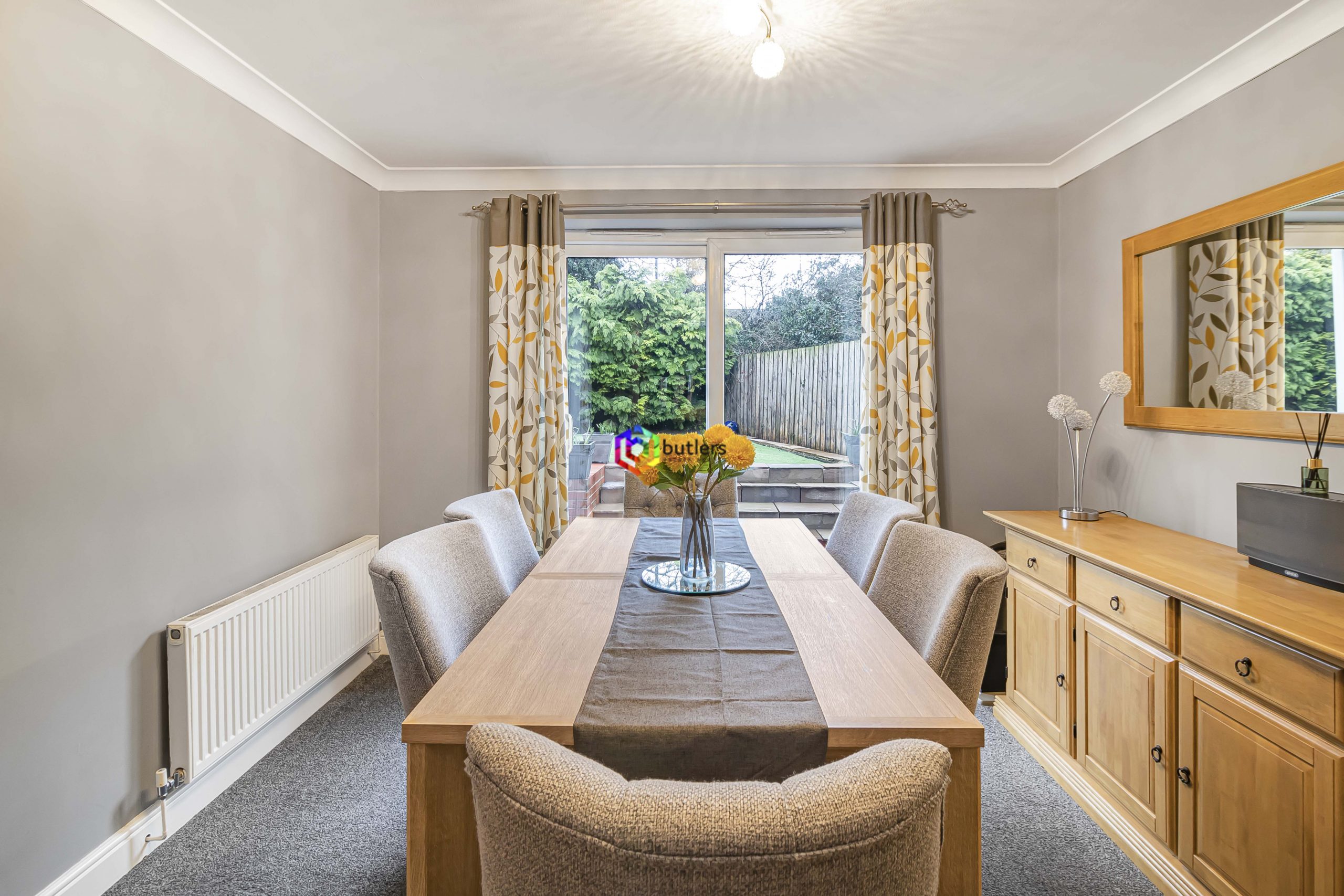 Adjacent to the kitchen is a separate dining room, which benefits from a patio door (providing easy access to the rear garden and offering a pleasant setting for formal meals or gatherings).