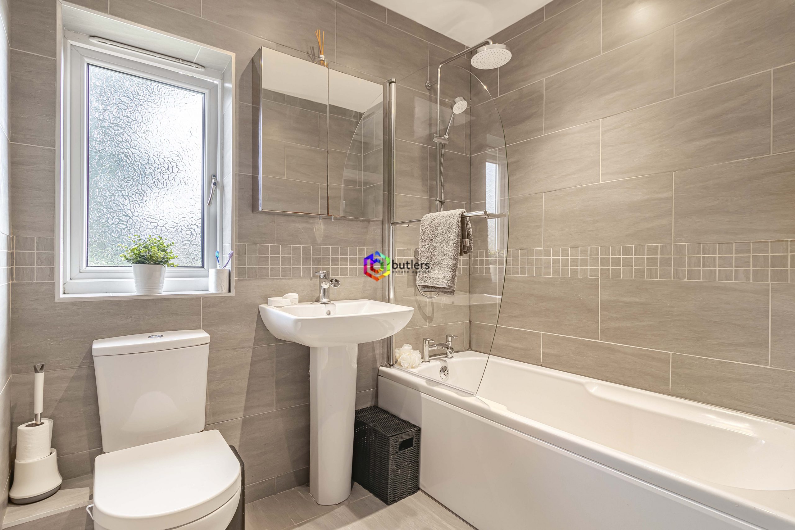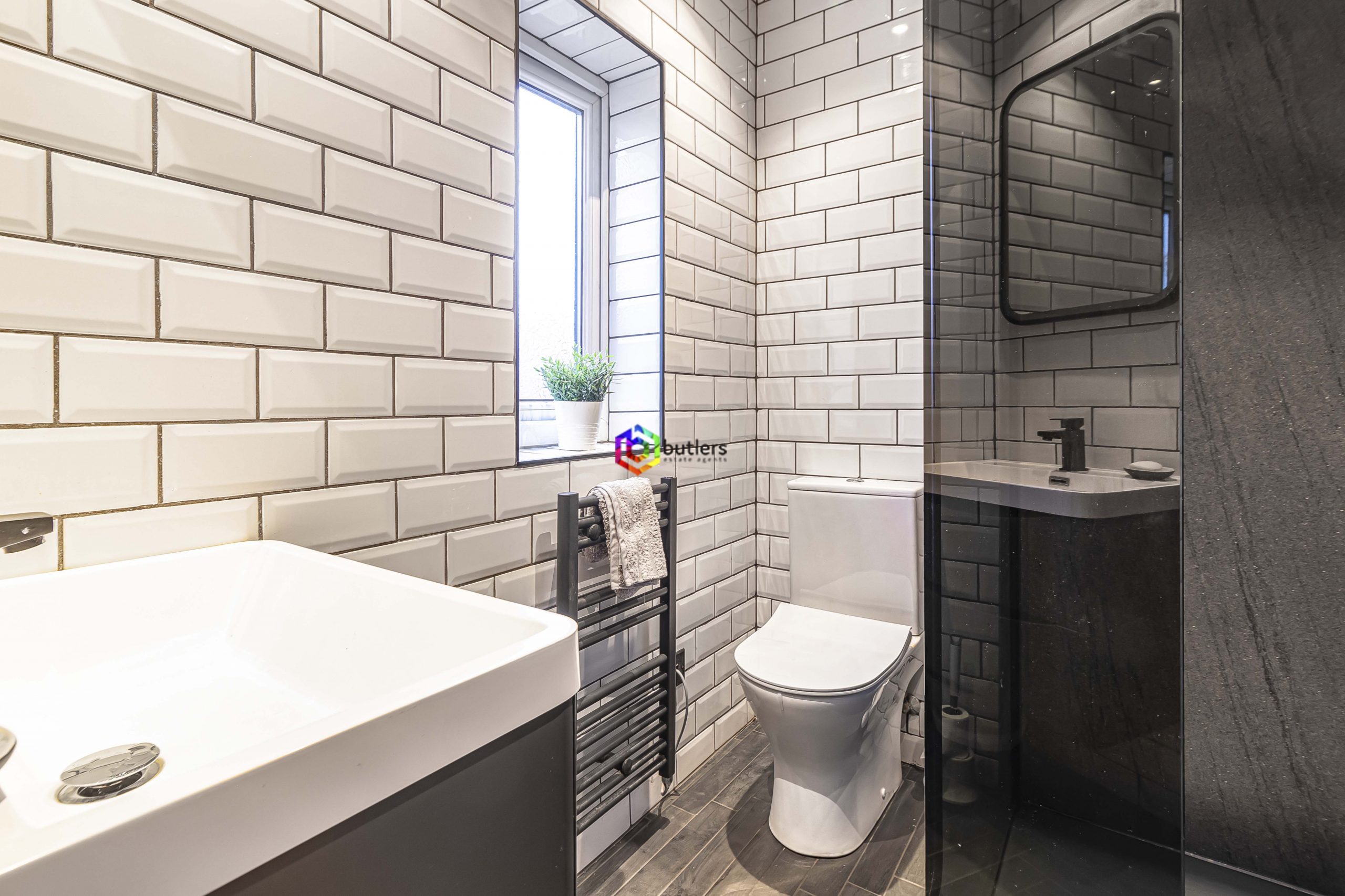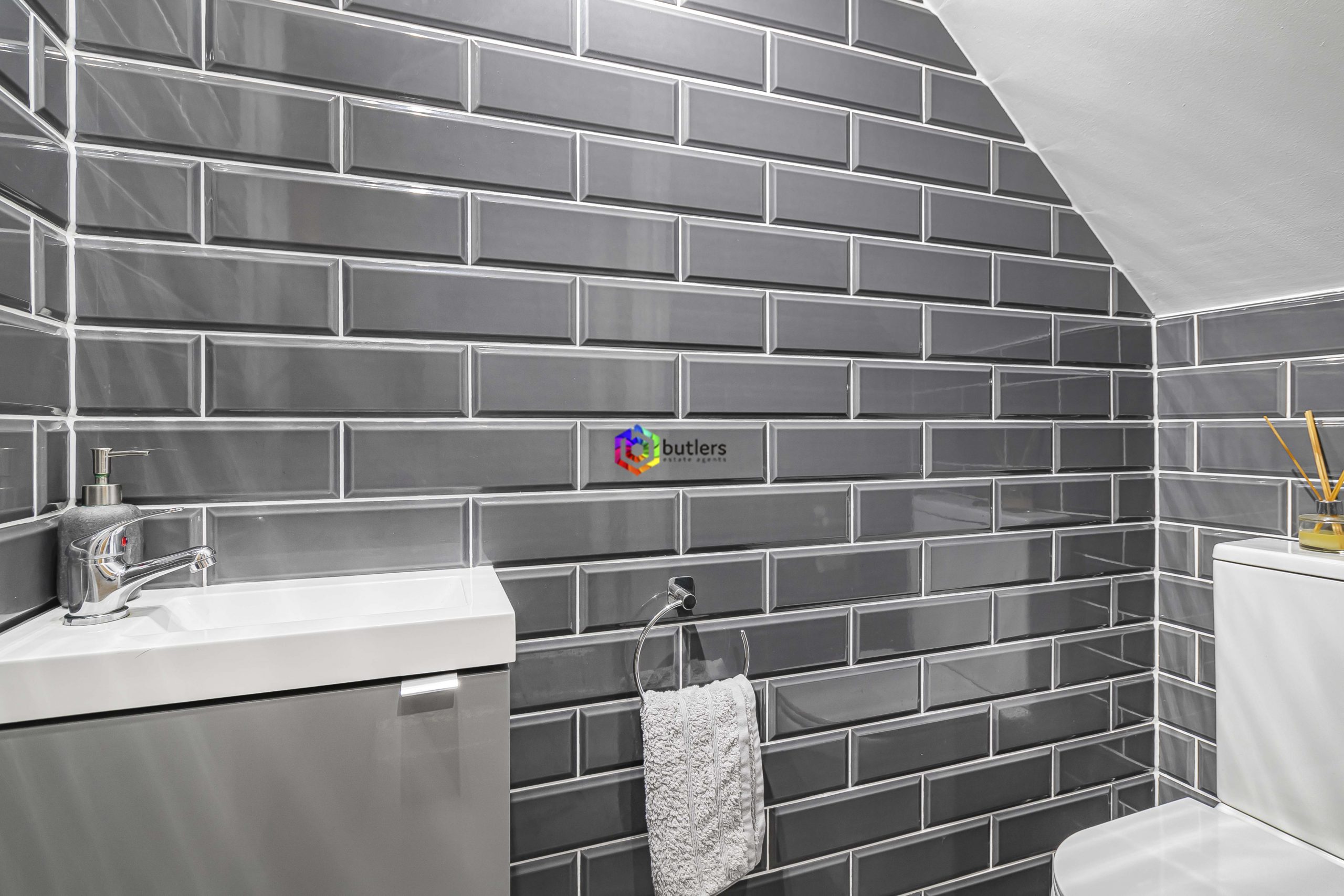 Recently modernised with grey brick style tiles to the walls, a white Wc and a rectangular white wash hand basin set in a vanity unit. A great addition for the growing family and guests alike.