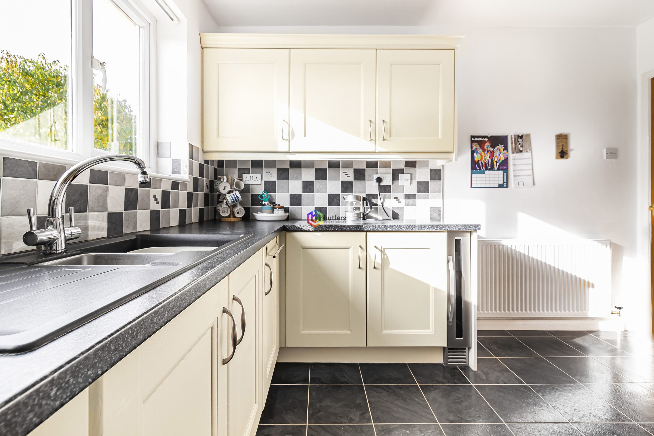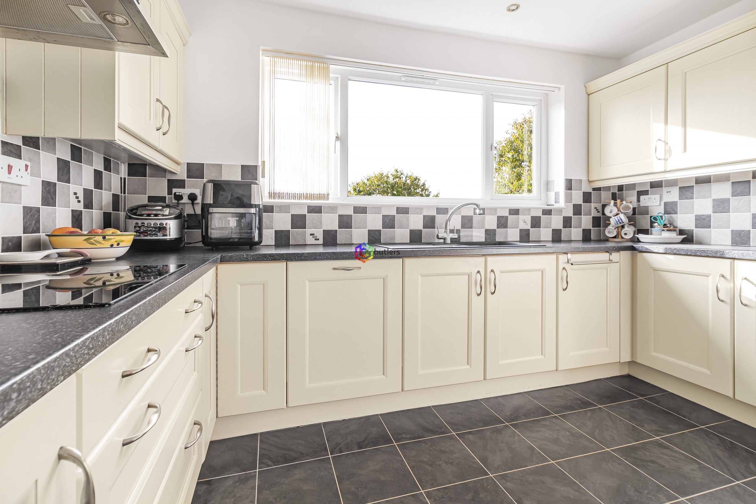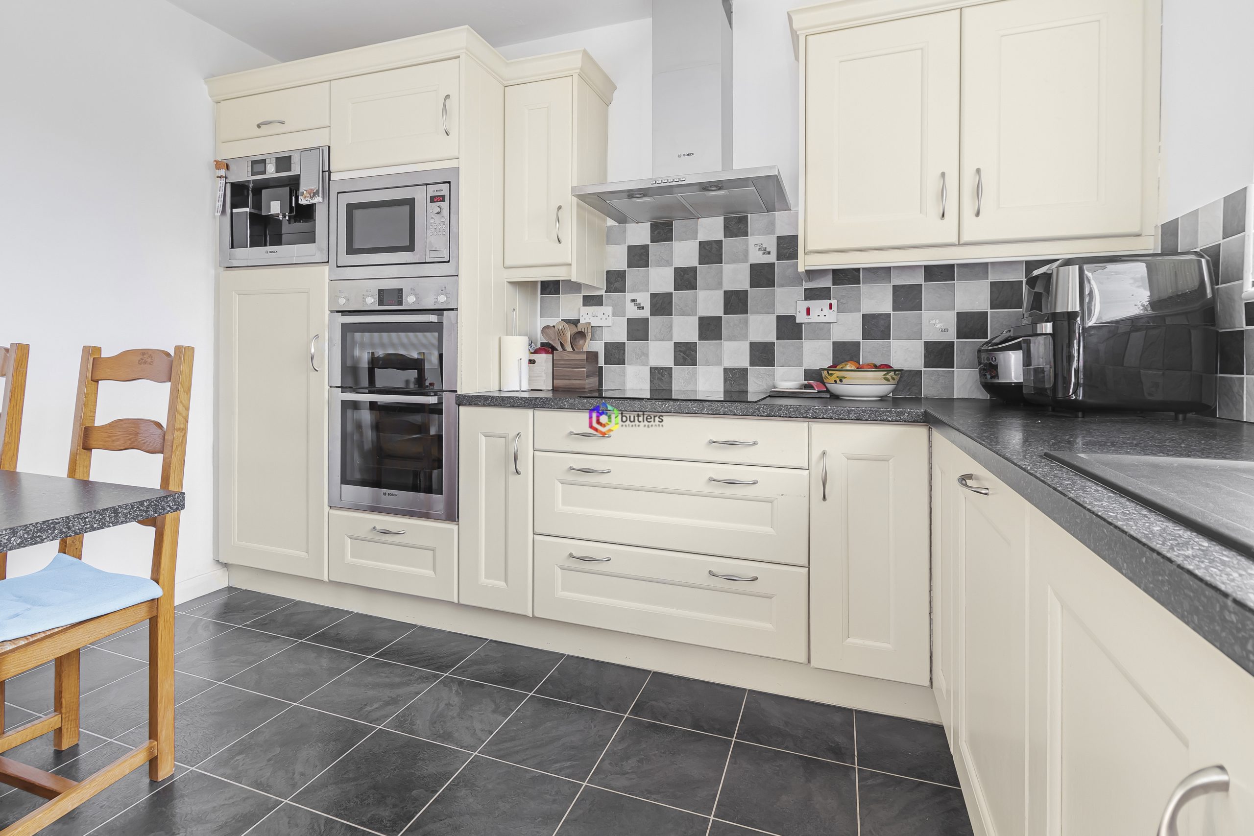 Fitted with a range of wall and floor mounted units in a cream shaker style with contrasting black worksurfaces. There is an eye level double oven, integrated microwave and the luxury of an integrated coffee machine. There is an integrated fridge and dishwasher with plenty of space for a breakfast table and chair set.