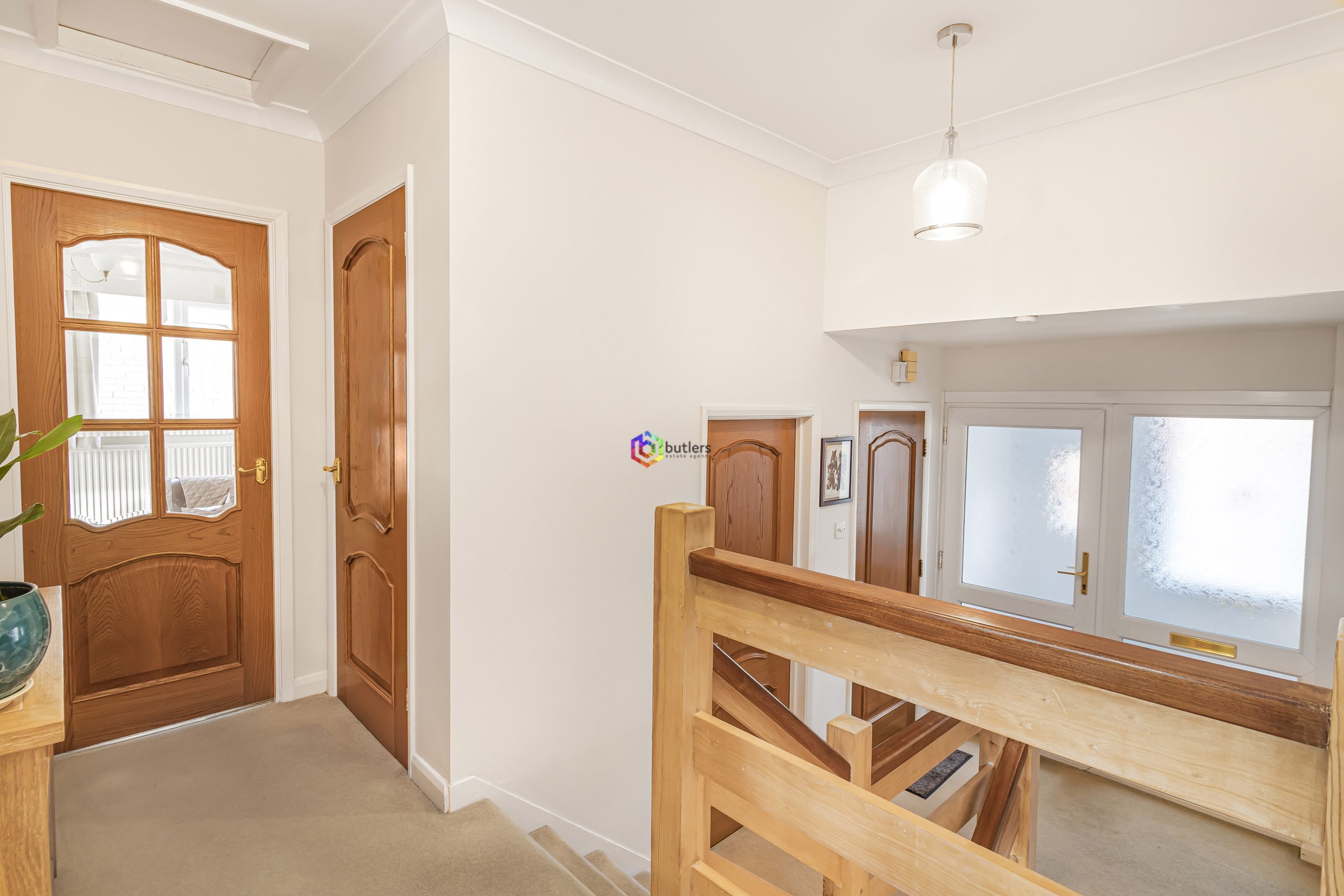 The front door leads you into a porch area which has a useful storage cupboard to hide away all your coats and shoes.