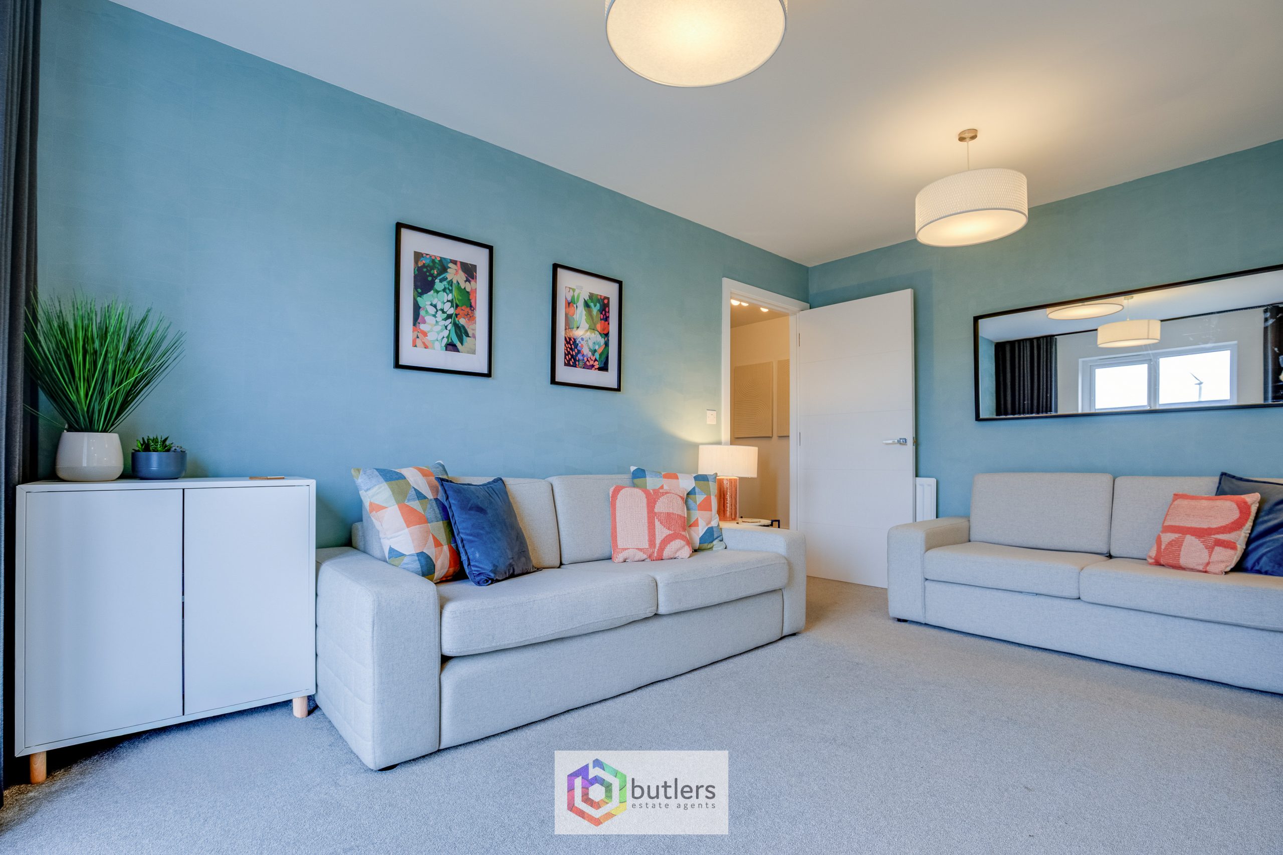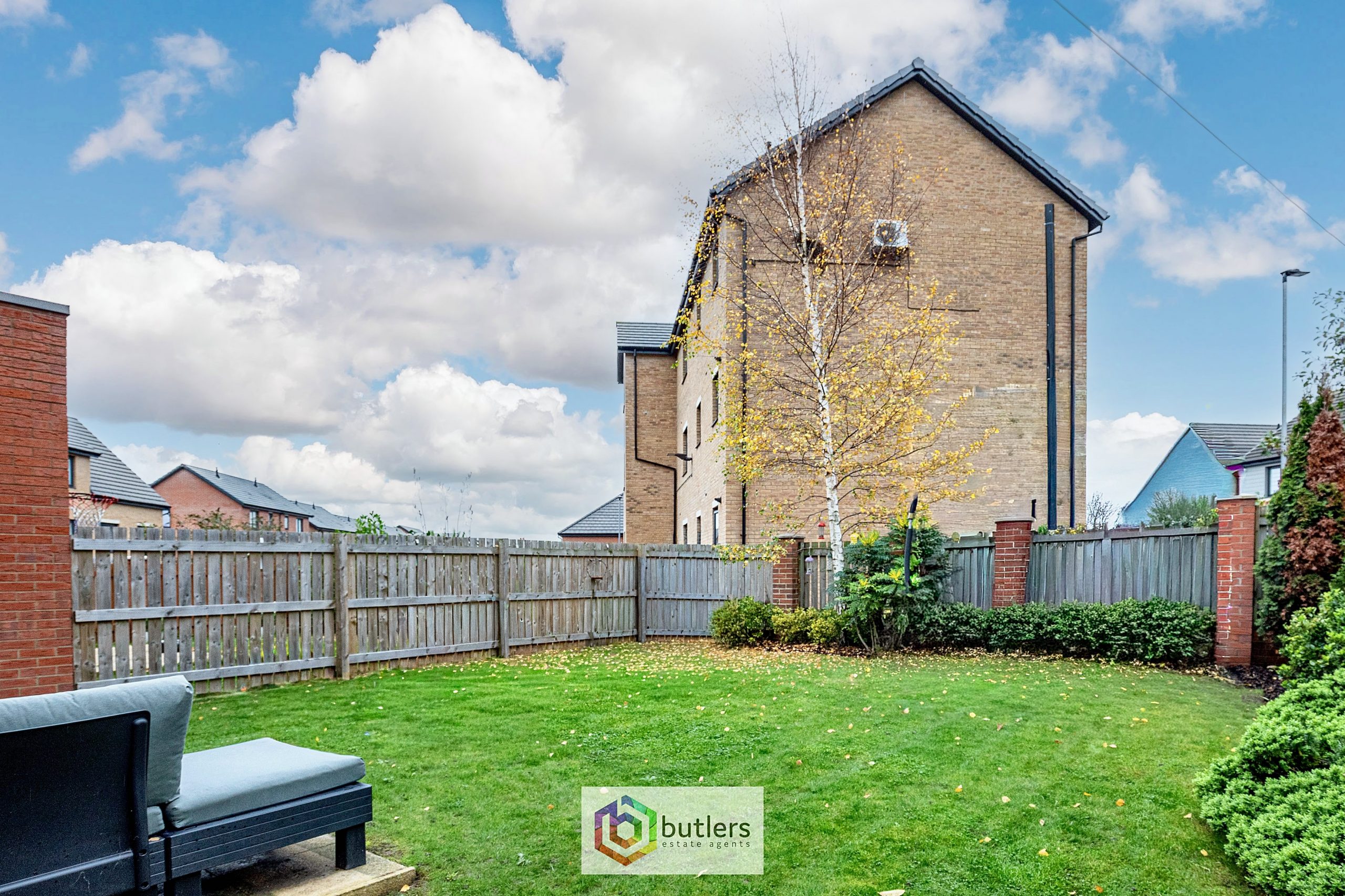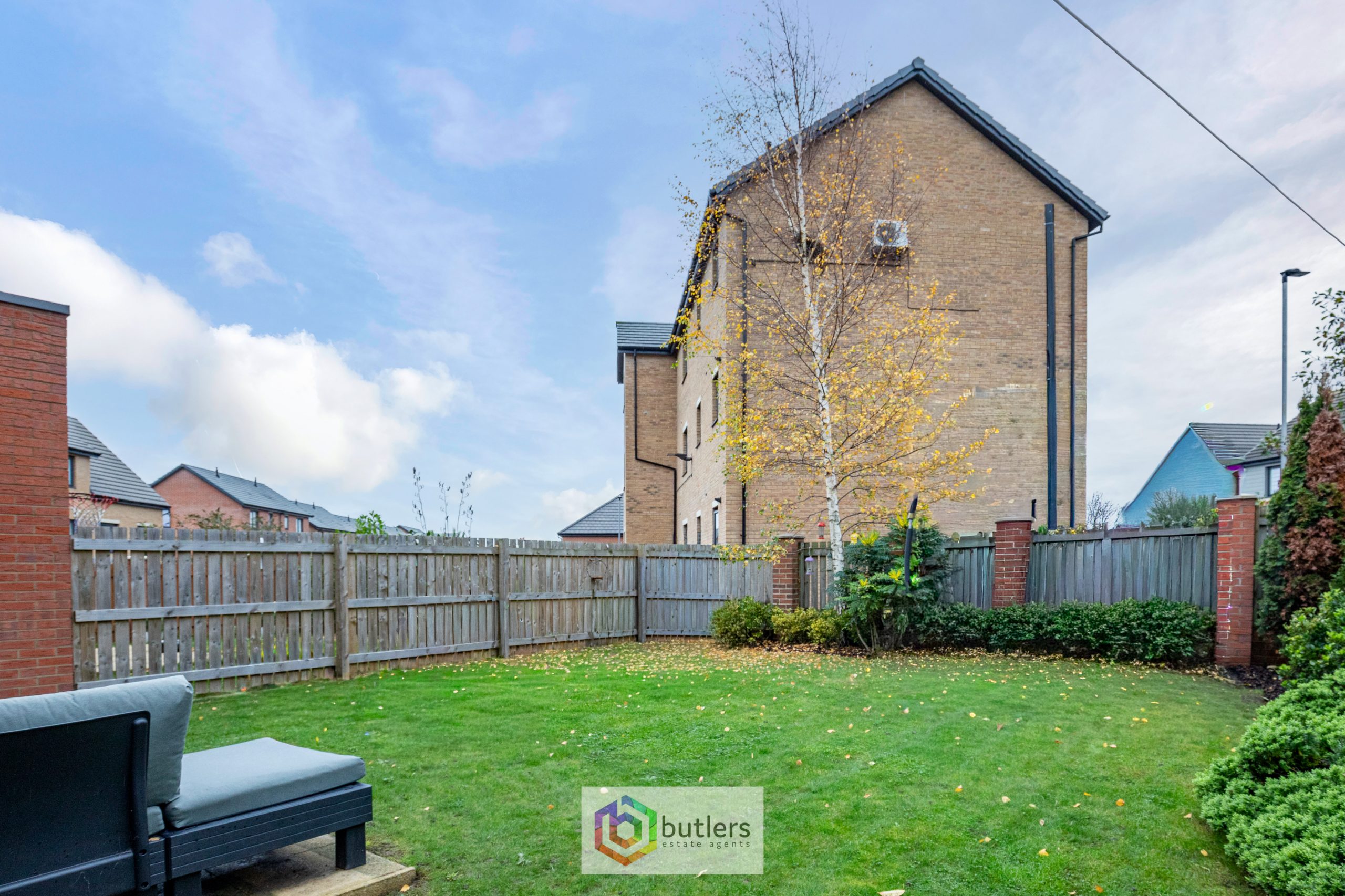 The accommodation is spread thoughtfully over three stories, providing flexibility and privacy for family life. Each bedroom is generously proportioned, with built-in wardrobes and plush carpeting, while the master suite and additional rooms offer ample natural light and modern finishes. Three contemporary bathrooms include features such as a walk-in shower, floating vanity, and heated towel rail for added luxury. Outdoors, enjoy a well-maintained private garden with a patio area and comfortable seating, perfect for summer gatherings. Off-road parking and a landscaped front garden complete this impressive home, offering style, comfort, and convenience for modern family living.