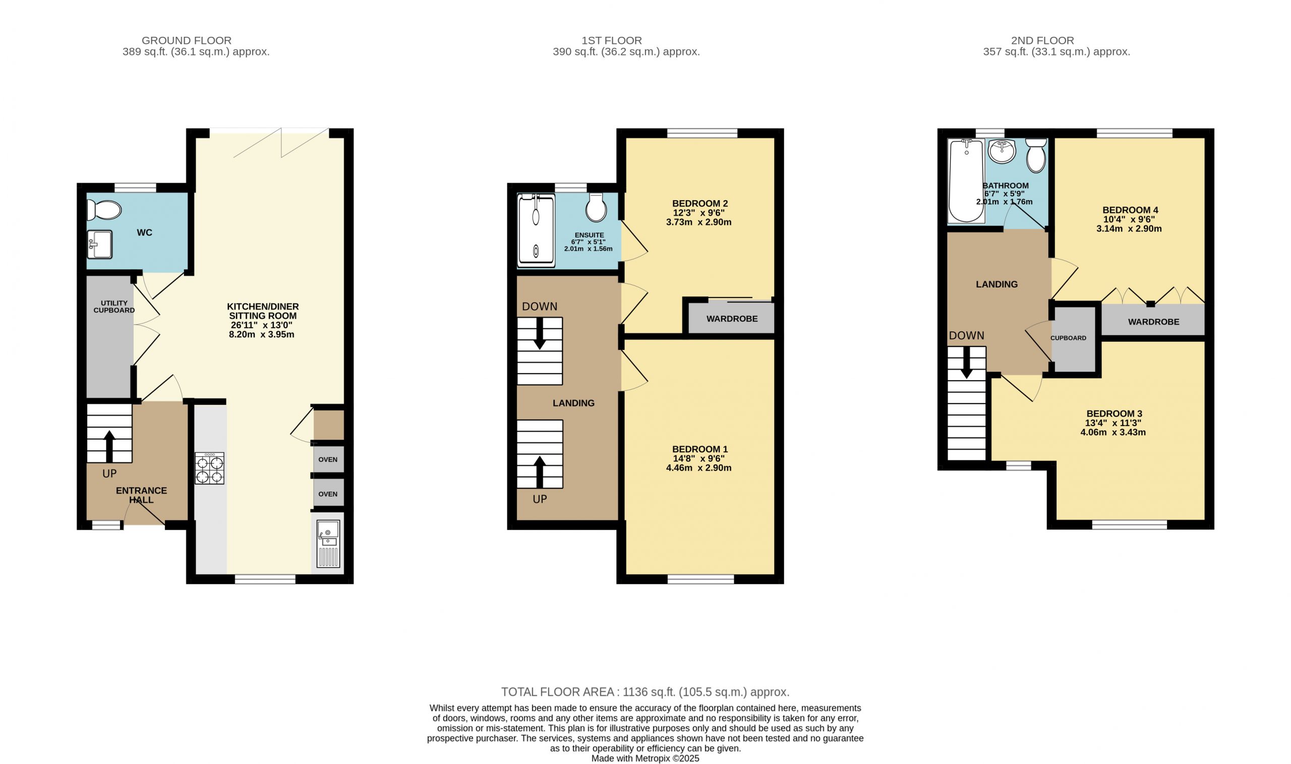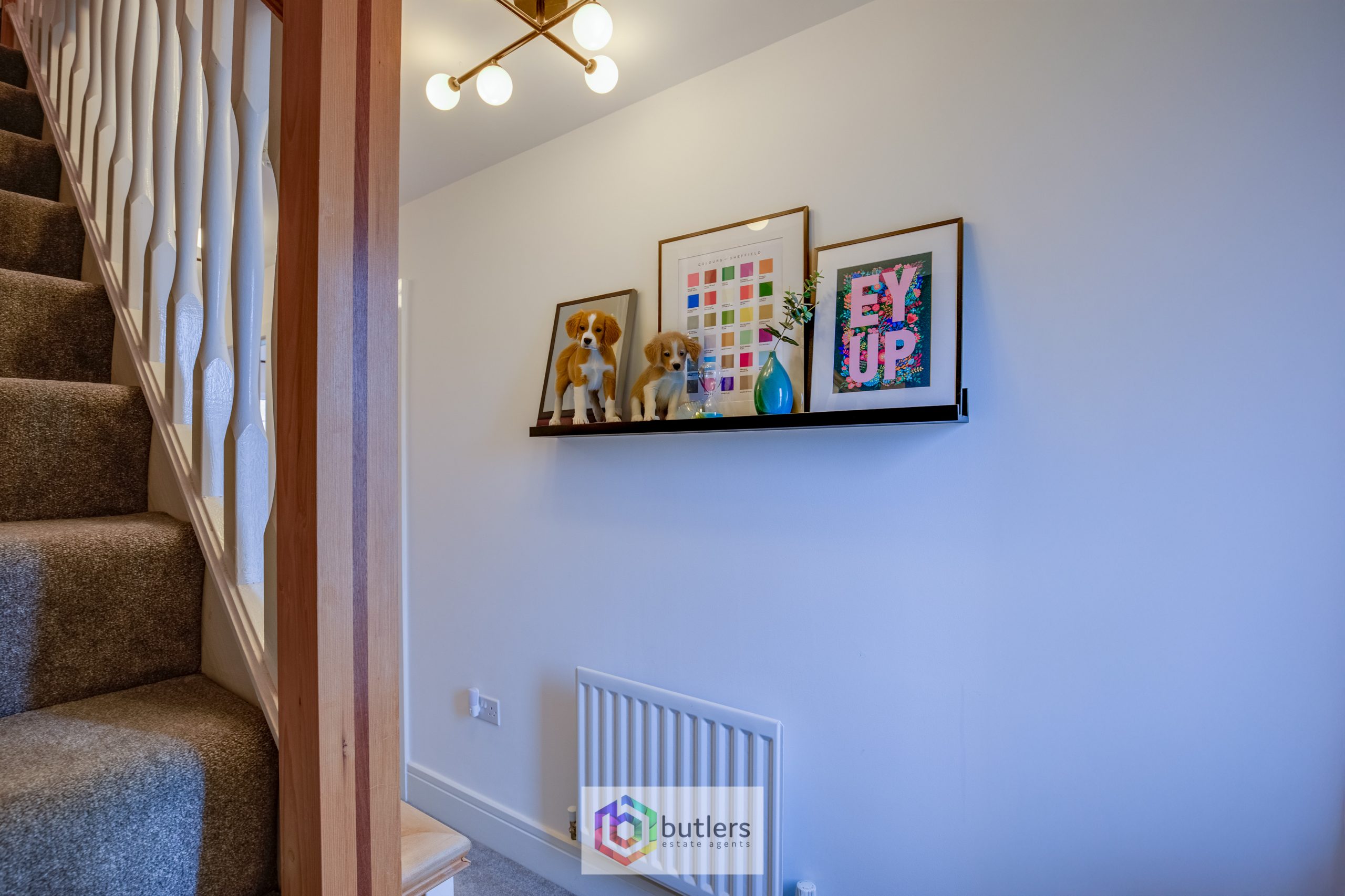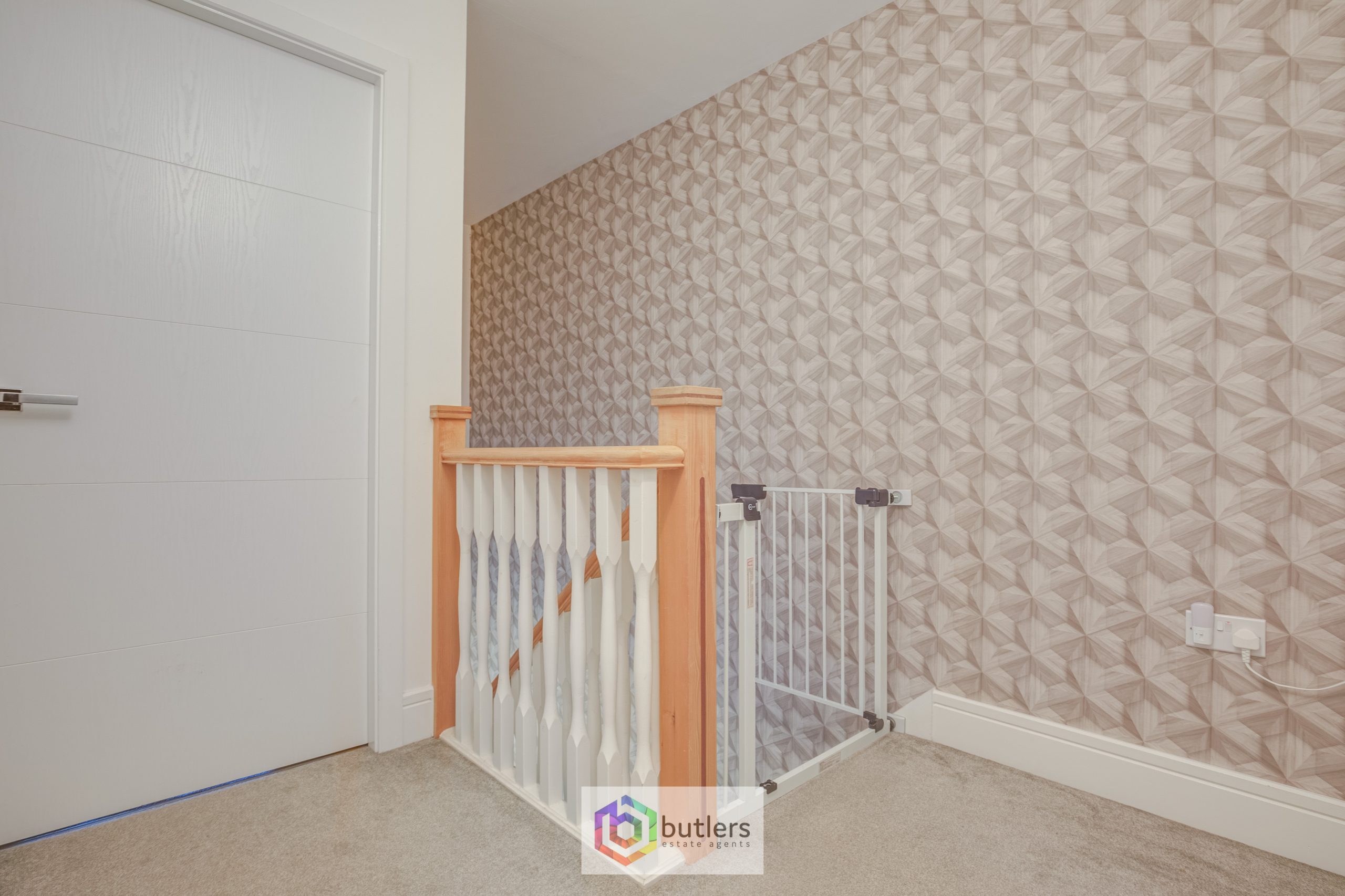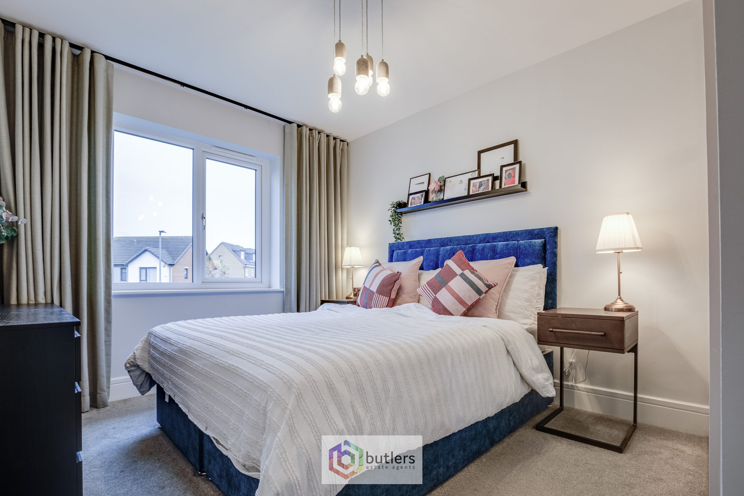 The accommodation is spread thoughtfully over three stories, providing flexibility and privacy for family life. Each bedroom is generously proportioned, with built-in wardrobes and plush carpeting, while the master suite and additional rooms offer ample natural light and modern finishes. Three contemporary bathrooms include features such as a walk-in shower, floating vanity, and heated towel rail for added luxury. Outdoors, enjoy a well-maintained private garden with a patio area and comfortable seating, perfect for summer gatherings. Off-road parking and a landscaped front garden complete this impressive home, offering style, comfort, and convenience for modern family living.