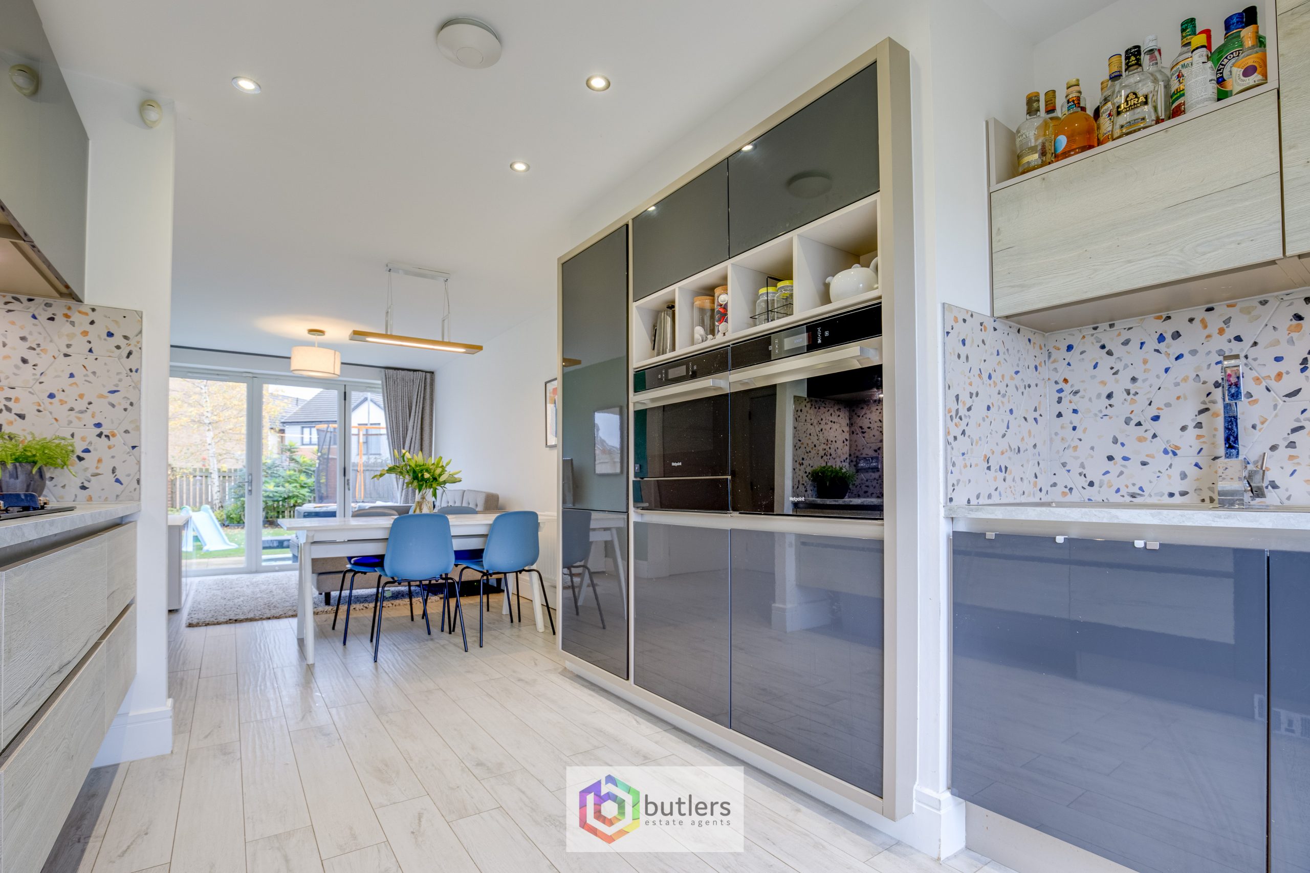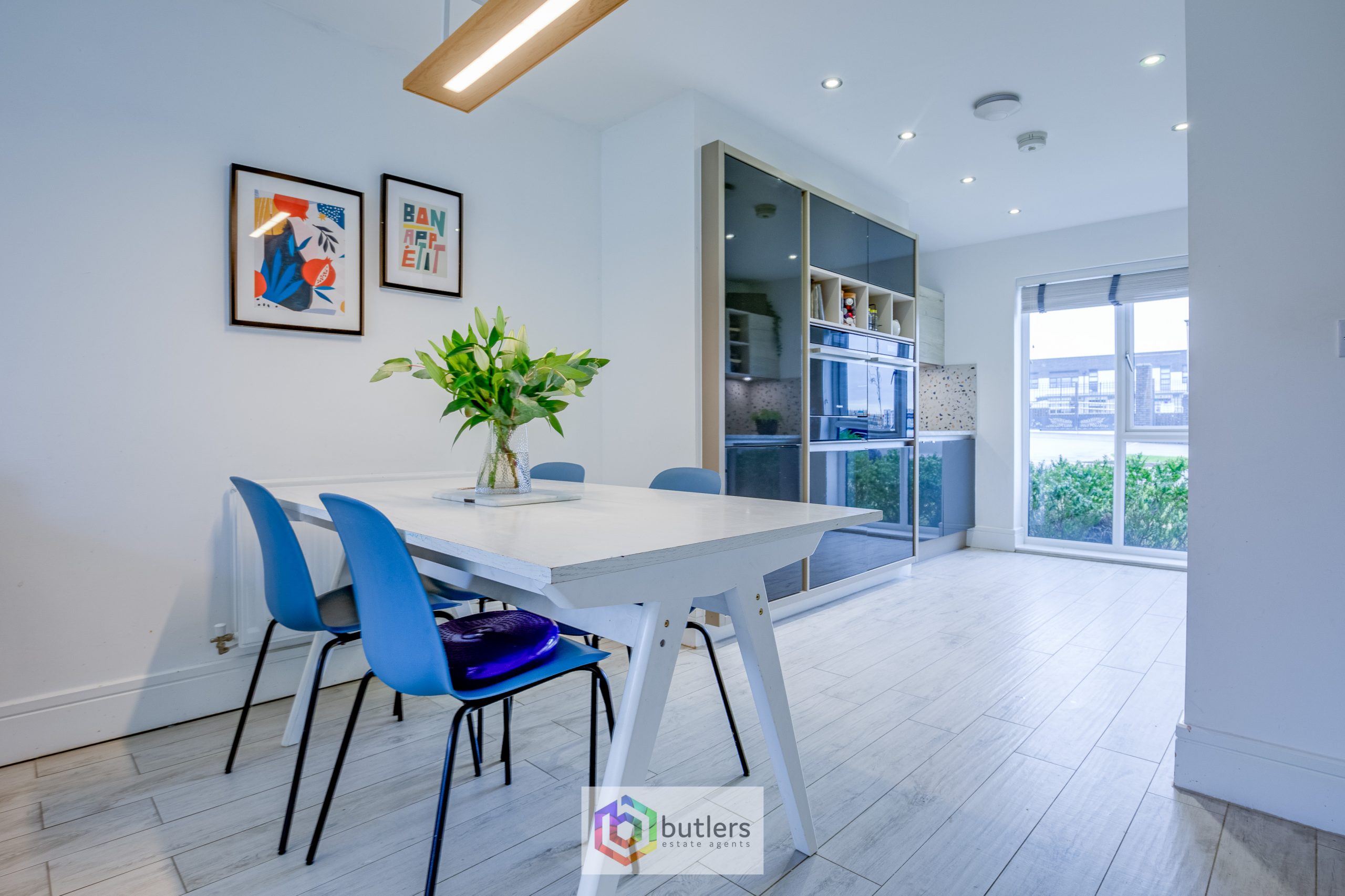 This outstanding four-bedroom, three-bathroom semi-detached house presents the perfect blend of contemporary design and family-friendly living. The heart of the home is a spacious open plan living area that flows seamlessly into a modern kitchen, complete with integrated appliances, stylish cabinetry, and elegant worktops. Bathed in natural light from large windows and bi-fold doors, the living and dining spaces are ideal for entertaining or relaxing with family. The property also features a welcoming entrance hall with a modern staircase and decorative accents, showcasing attention to detail throughout.