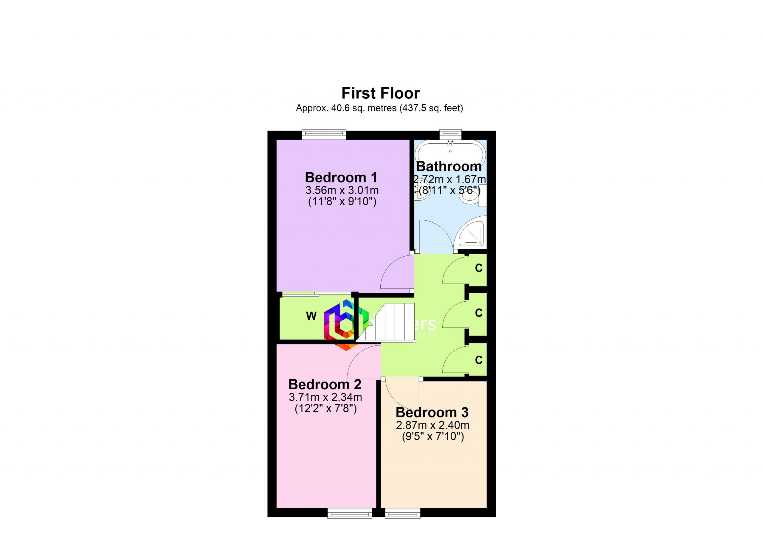 Bedroom Three 9' 5" x 7' 10" (2.87m x 2.40m)