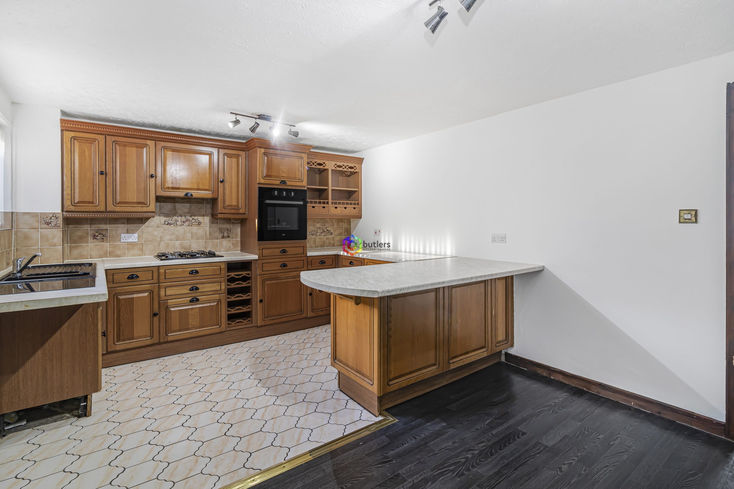 A great space across the rear of the house for entertaining or preparing family meals. This really could be the heart of the home with the warm oak units with contrasting white work surfaces. There is a an eye level oven, ceramic hob with extractor above and a sink beneath the window overlooking the rear garden. Plenty of room for a table and chair set to compliment the breakfast bar. Twin doors lead through to the extension.