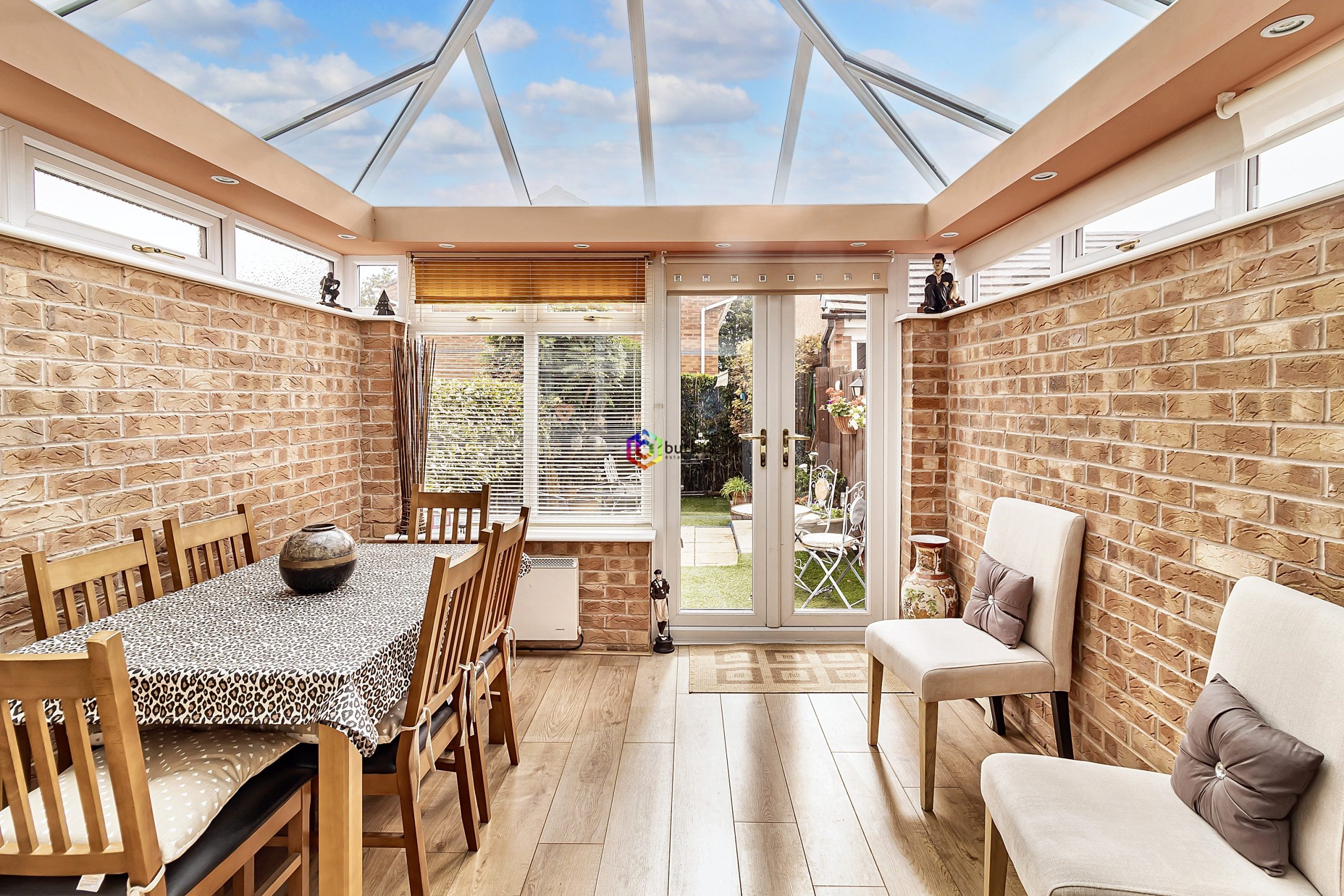 This full extension to the rear of the house has a Celsius Elite glazed roof and doors leading out to the rear garden and the Lounge. It has glazing to all sides and exposed brick walls making it a very useable room and offers opportunities from its current use as a formal dining room to playrooms, work from home space or a garden sun room for relaxation.
