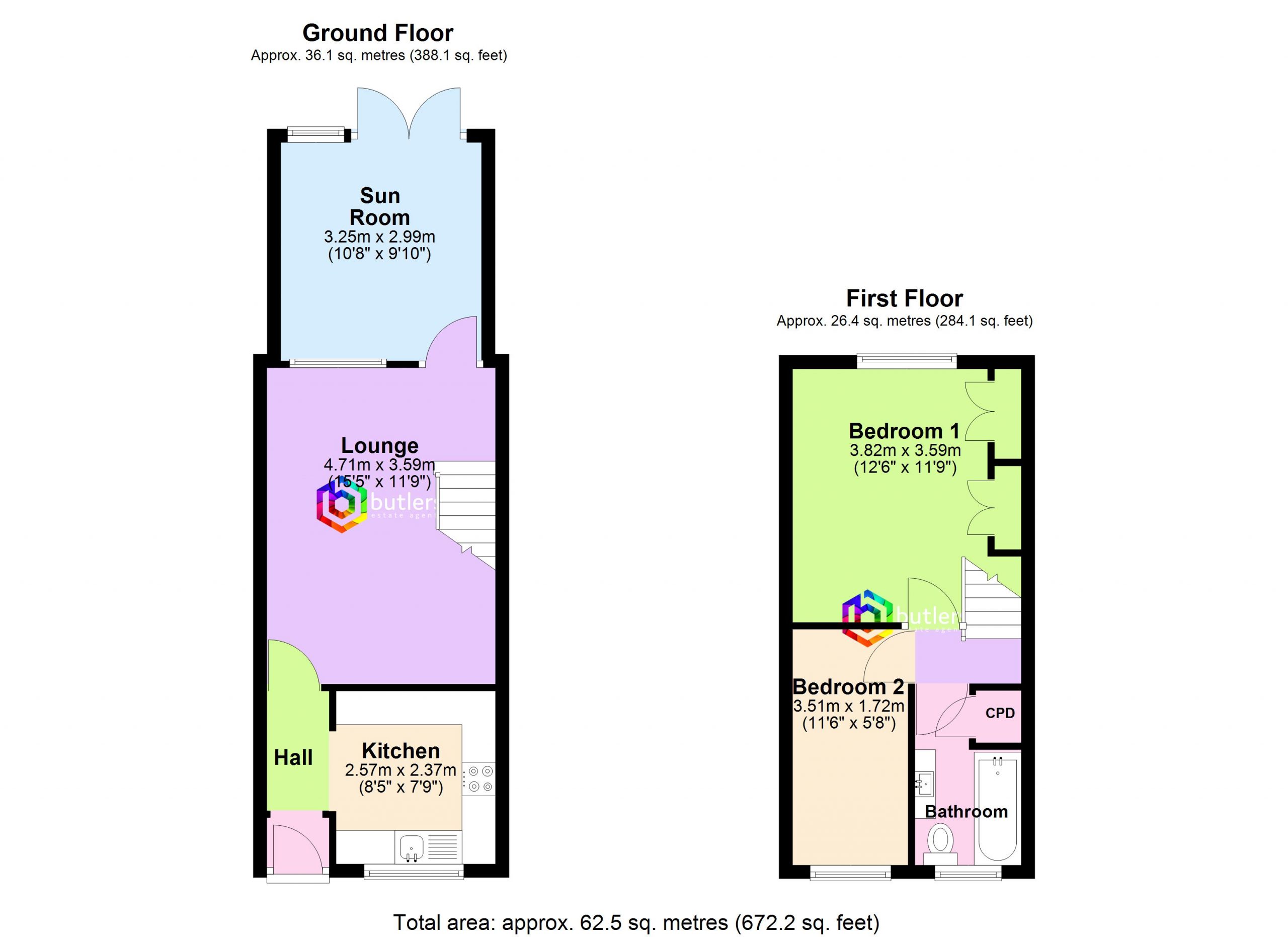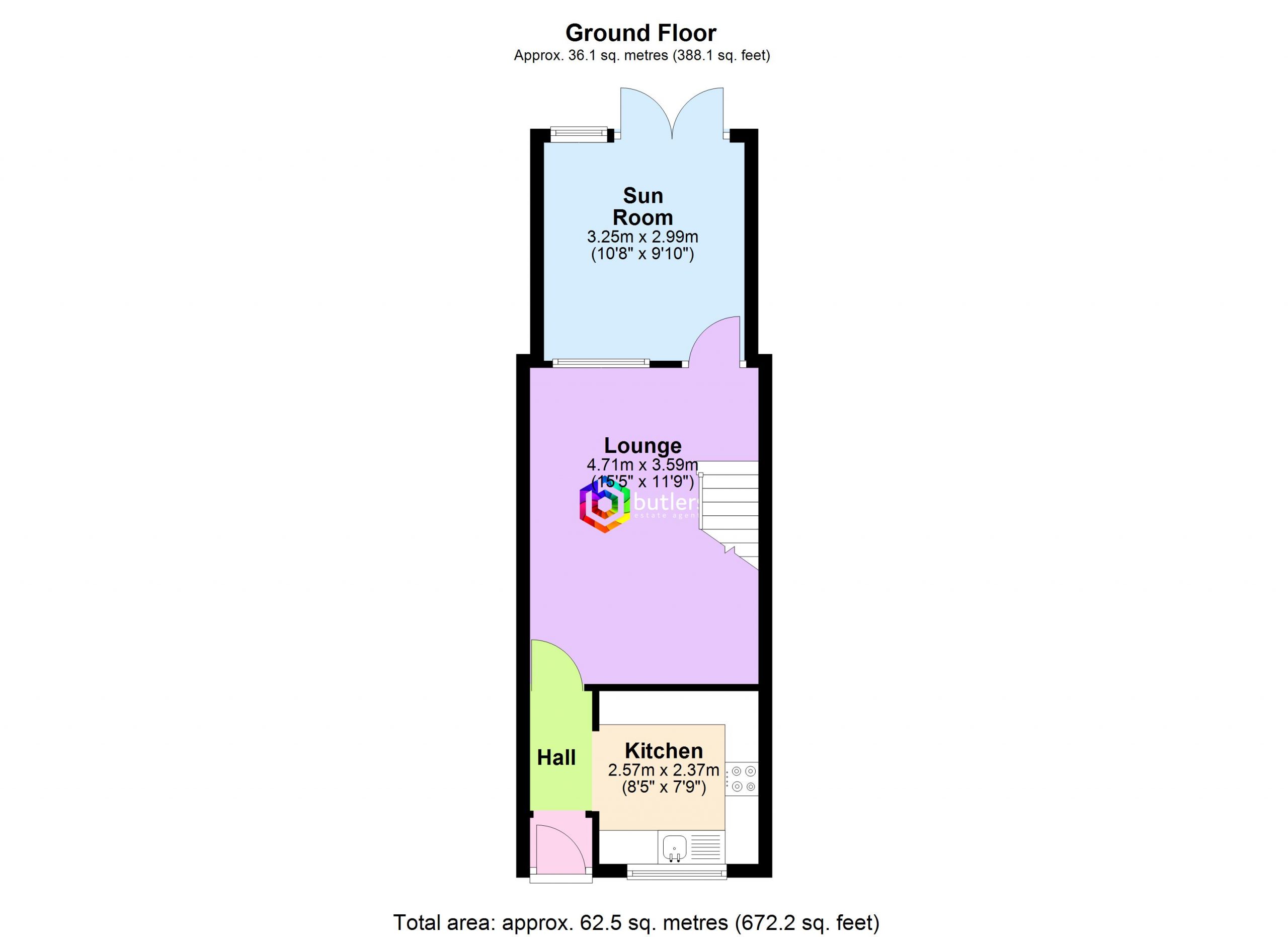 The front door leads into the Hall which is open plan to the kitchen and provides access to the Lounge.