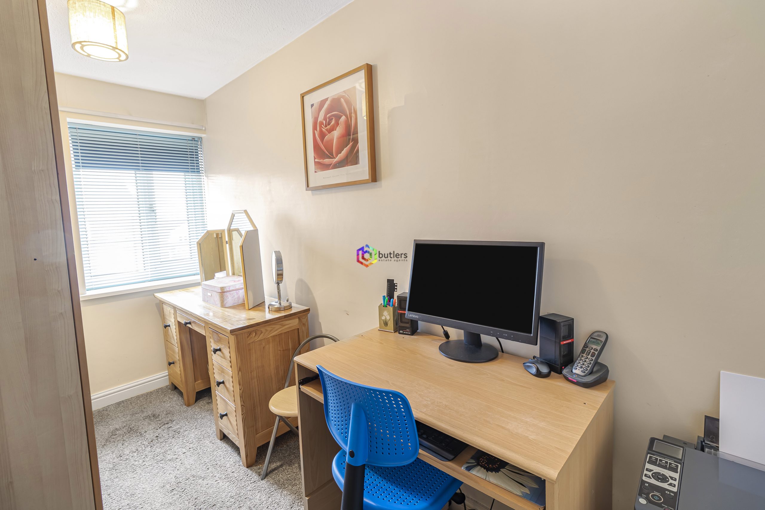 This bedroom is currently used as a home office and a dressing room. It has a window to the front