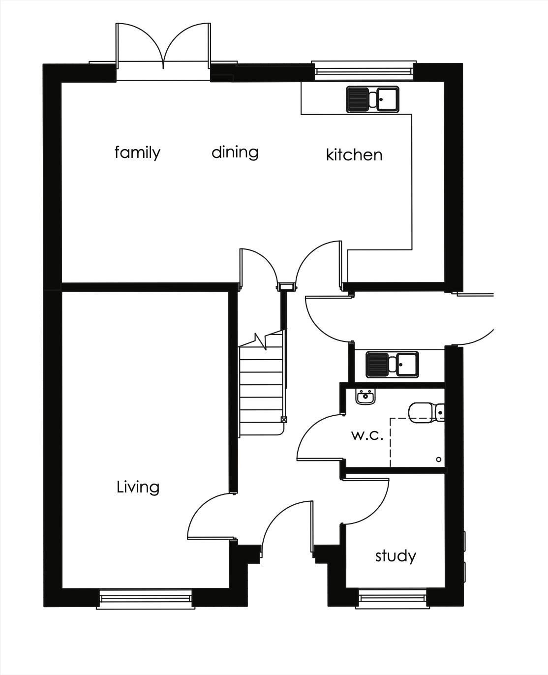 The Wibben is a contemporary four-bedroom detached family home designed for modern families which boasts an enviable living space, with enough space for two living room areas. A feature hallway leads onto the study, downstairs W/C. and convenient utility room perfect for practical modern family living. The well-thought-out floor plan provides a large living room looking out to the front of the home, and an open-plan kitchen/dining area with room for a second living space.