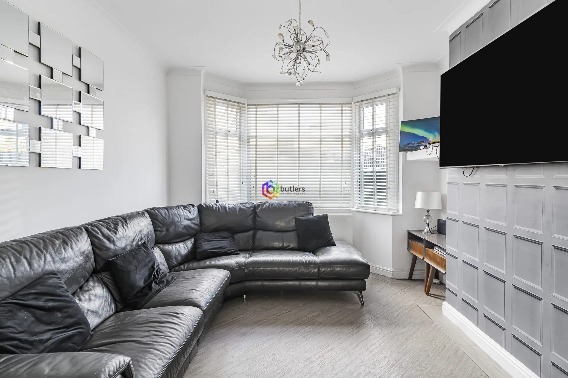 Located at the front of the house with a lovely bay window and panelling to wall where the TV hangs. A great space for the family to get together.