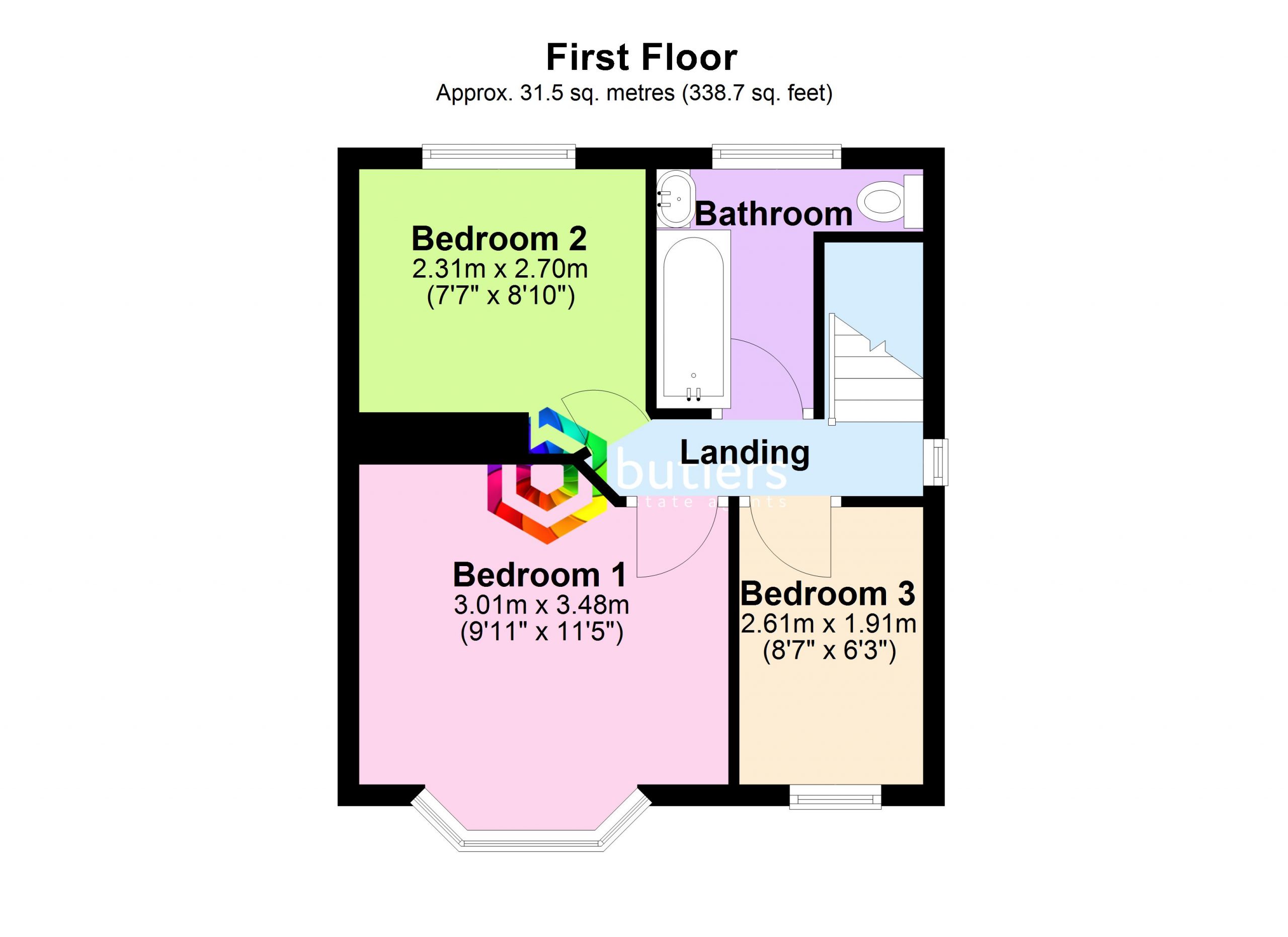 Bedroom Three 8' 7" x 6' 3" (2.61m x 1.91m)