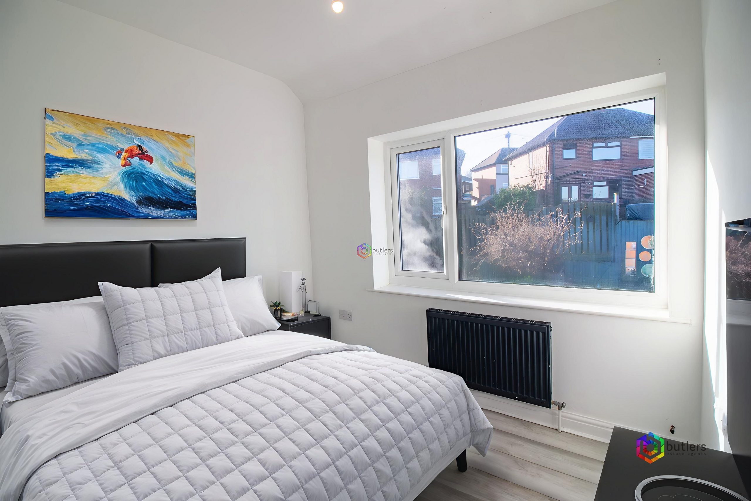 This double bedroom has a rear-facing window. The photo has been enhanced with virtual staging to provide clients with ideas on how the property could look, but please be aware that when viewing it will look different to the photos as this furniture will not be present.