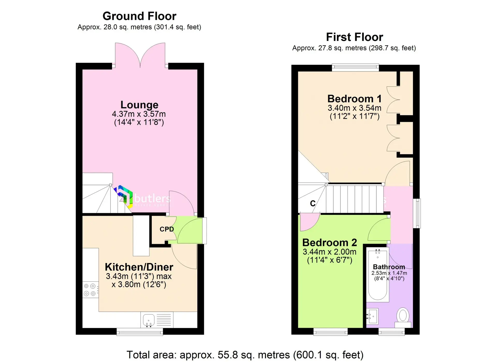 The front door is on the side of the property and brings you into a square hallway with access to the kitchen and the lounge. There is a cupboard which is useful for shoes and coats.