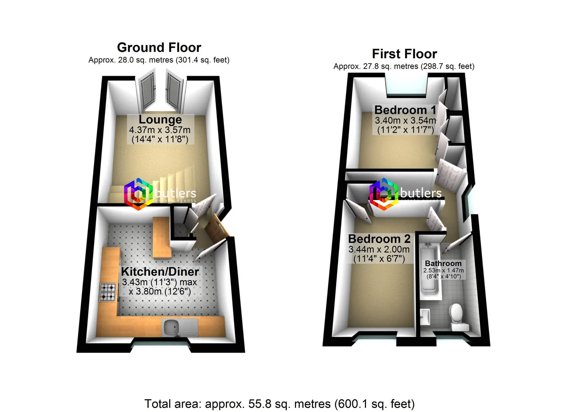 The property comprises two well-appointed bedrooms, offering comfortable retreats for relaxation and rest. The modern grey bathroom exudes elegance and is fitted with sleek fixtures, creating a relaxing experience for occupants.