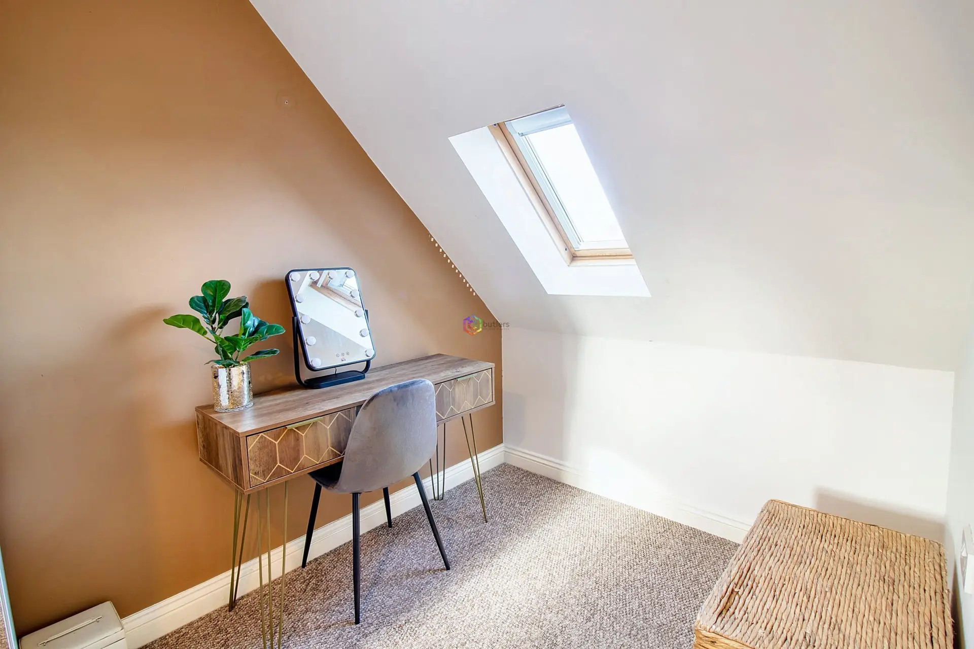 Occupying the top floor this is your own suite, with velux windows to front and rear there is plenty of space for your bed and furniture. There is a door to the landing and the En-Suite.