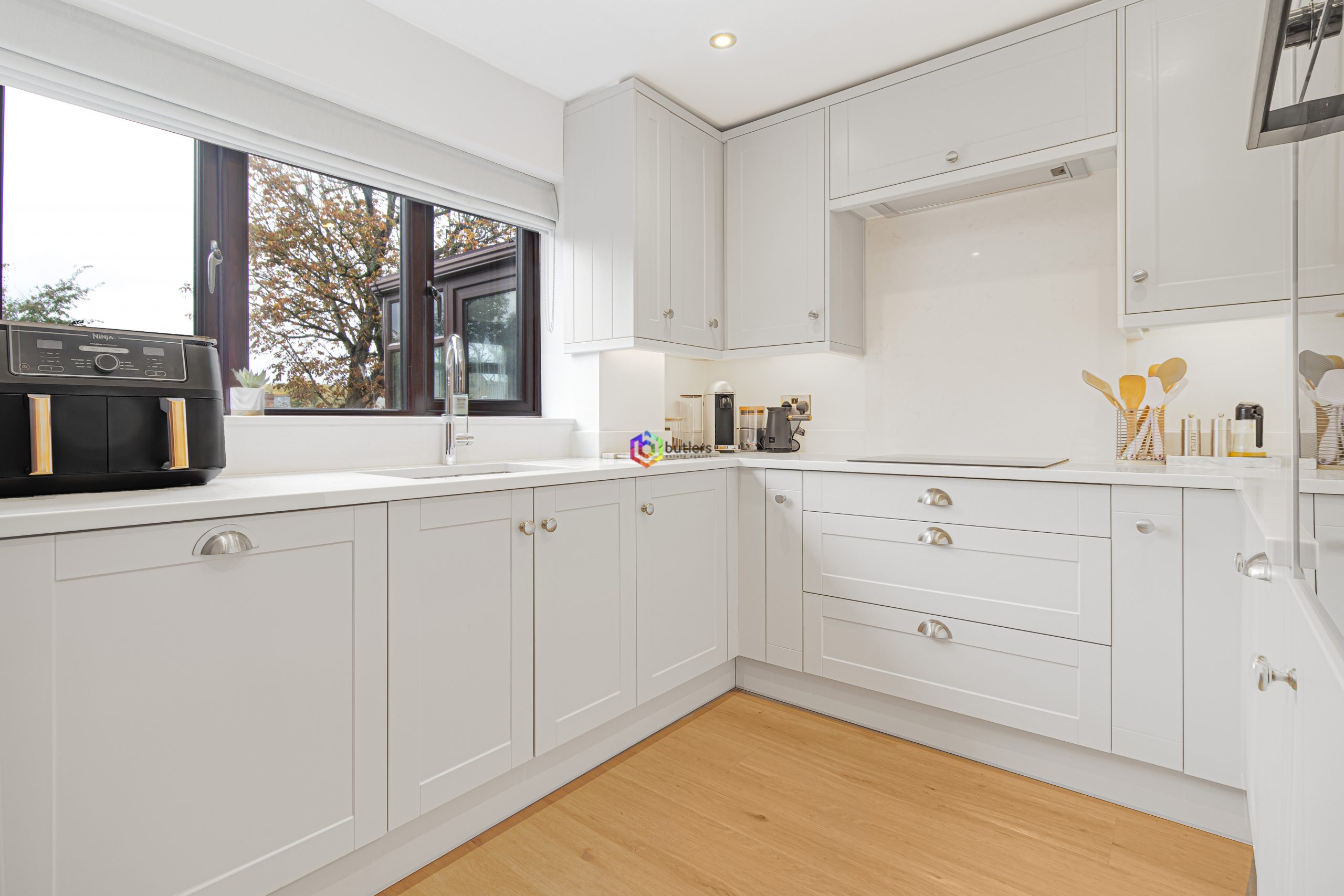Superb recently renovated kitchen with an eye-level single electric oven, induction hob with extractor over, free-standing fridge/ freezer and integrated dishwasher. The modern inset double bowl sink, with quooker hot tap, is located beneath the window overlooking the rear garden. The room has made the best use of space and provides those who enjoy cooking to have everything within reach.