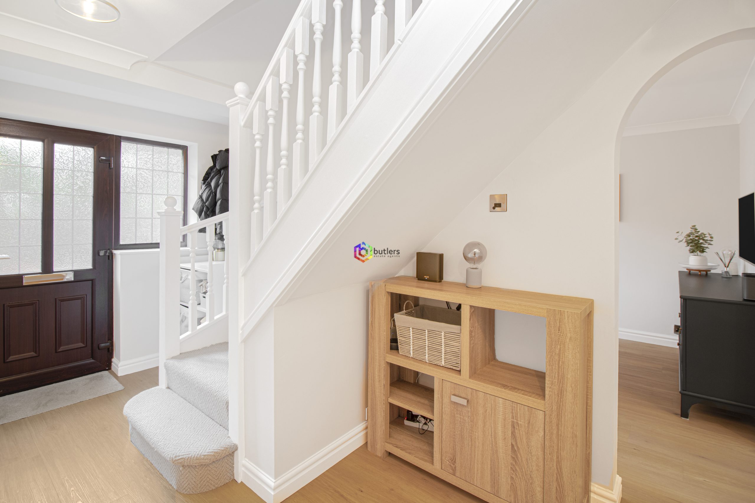 The front door opens into a spacious hall with a natural recess for coats and shoes, while the under-stairs area provides additional storage space. Fabulous traditional style hallway.