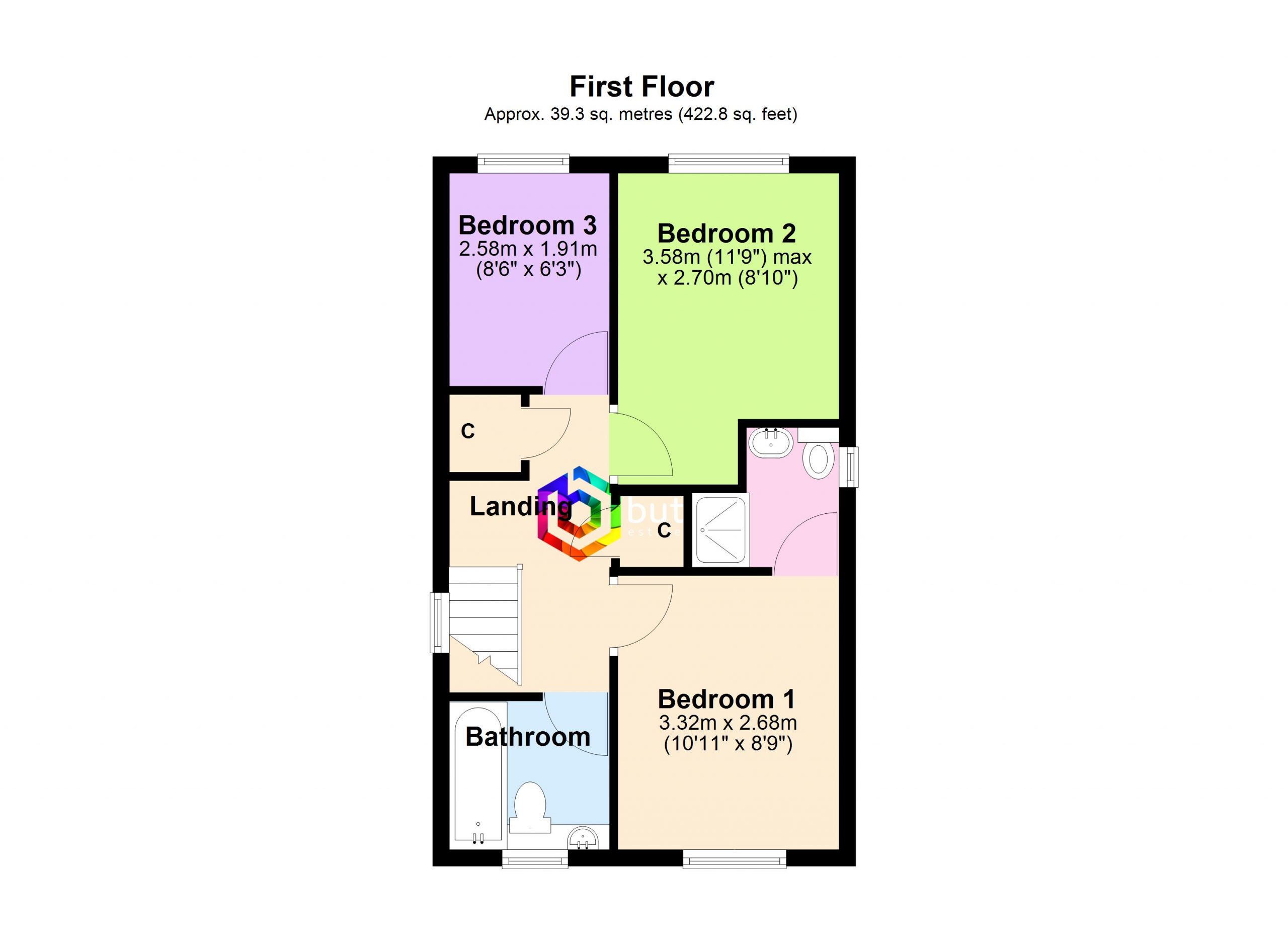Bedroom Three 8' 6" x 6' 3" (2.58m x 1.91m)