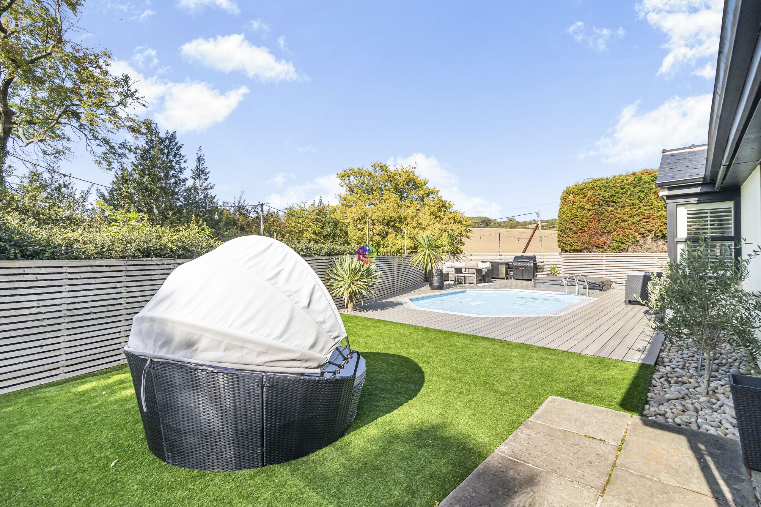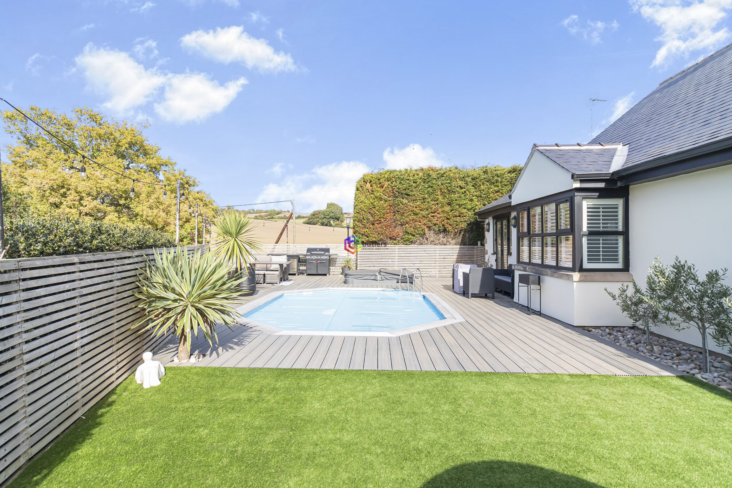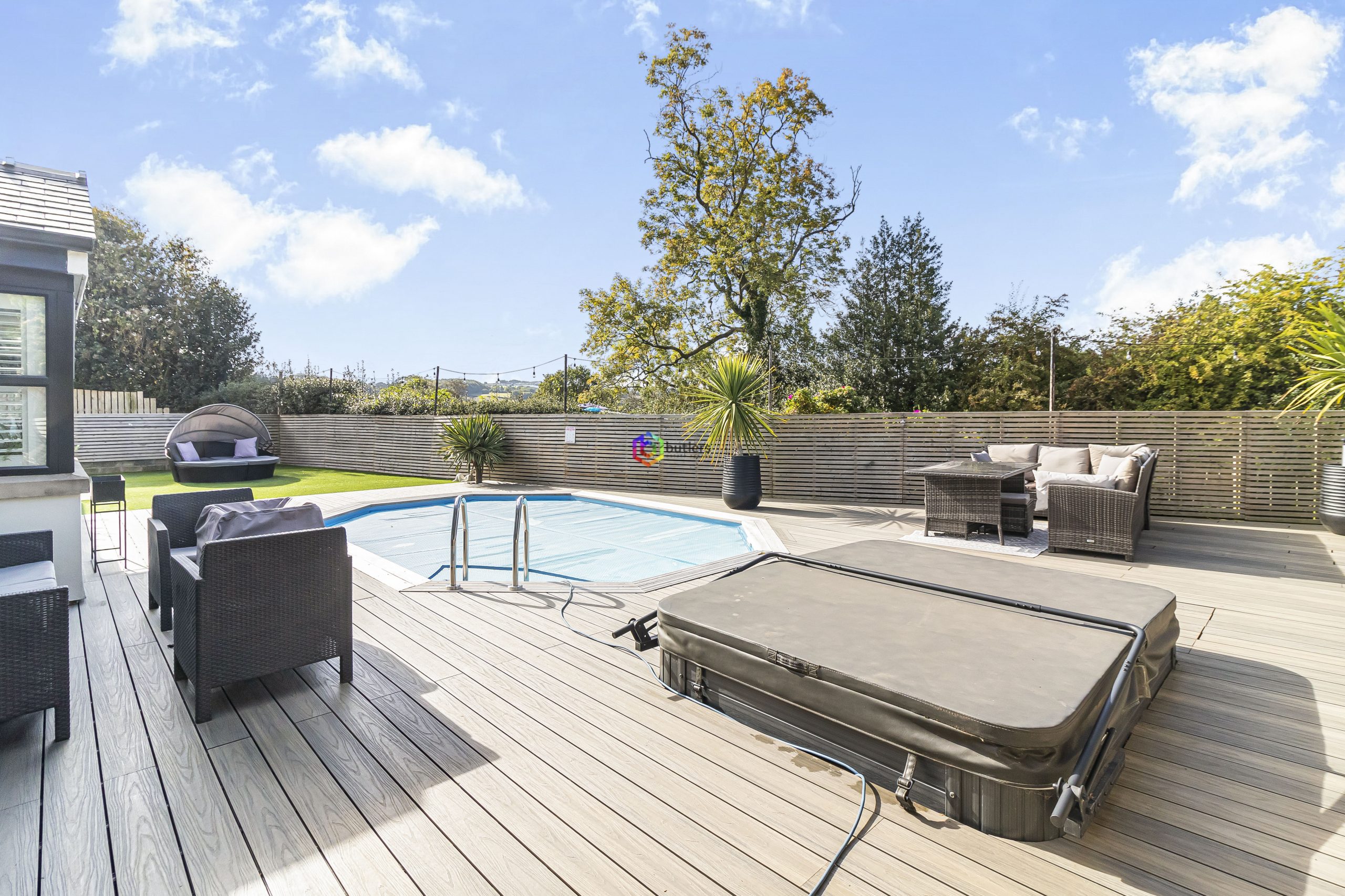 The property offers practicality with a boot room and a convenient WC, ensuring every need is met effortlessly. A heated swimming pool and a relaxing hot tub beckon for blissful moments of leisure, creating a private sanctuary at home.