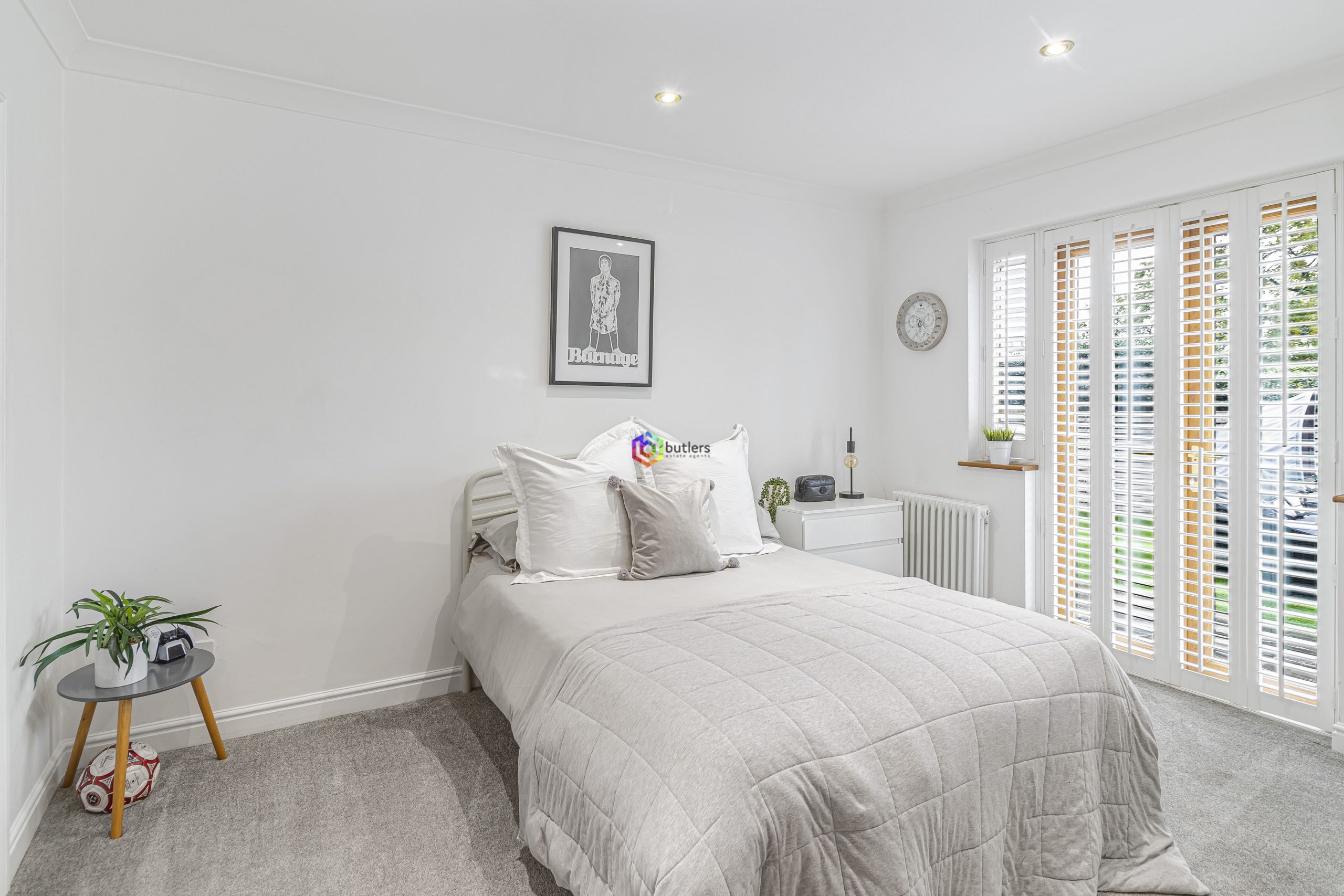 Almost another suite with twin patio doors leading to the rear garden and doors to the hall and en-suite plus dressing area.