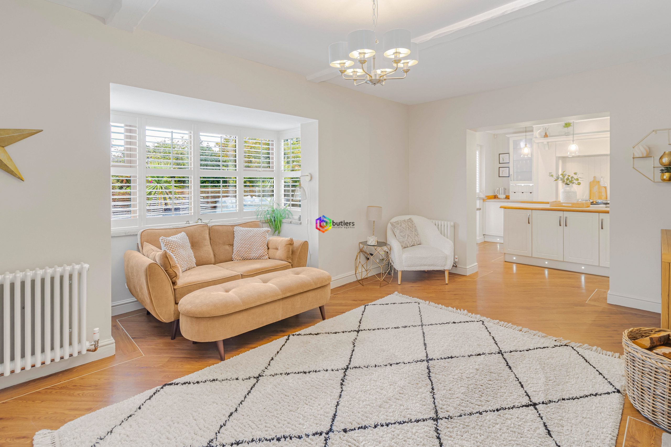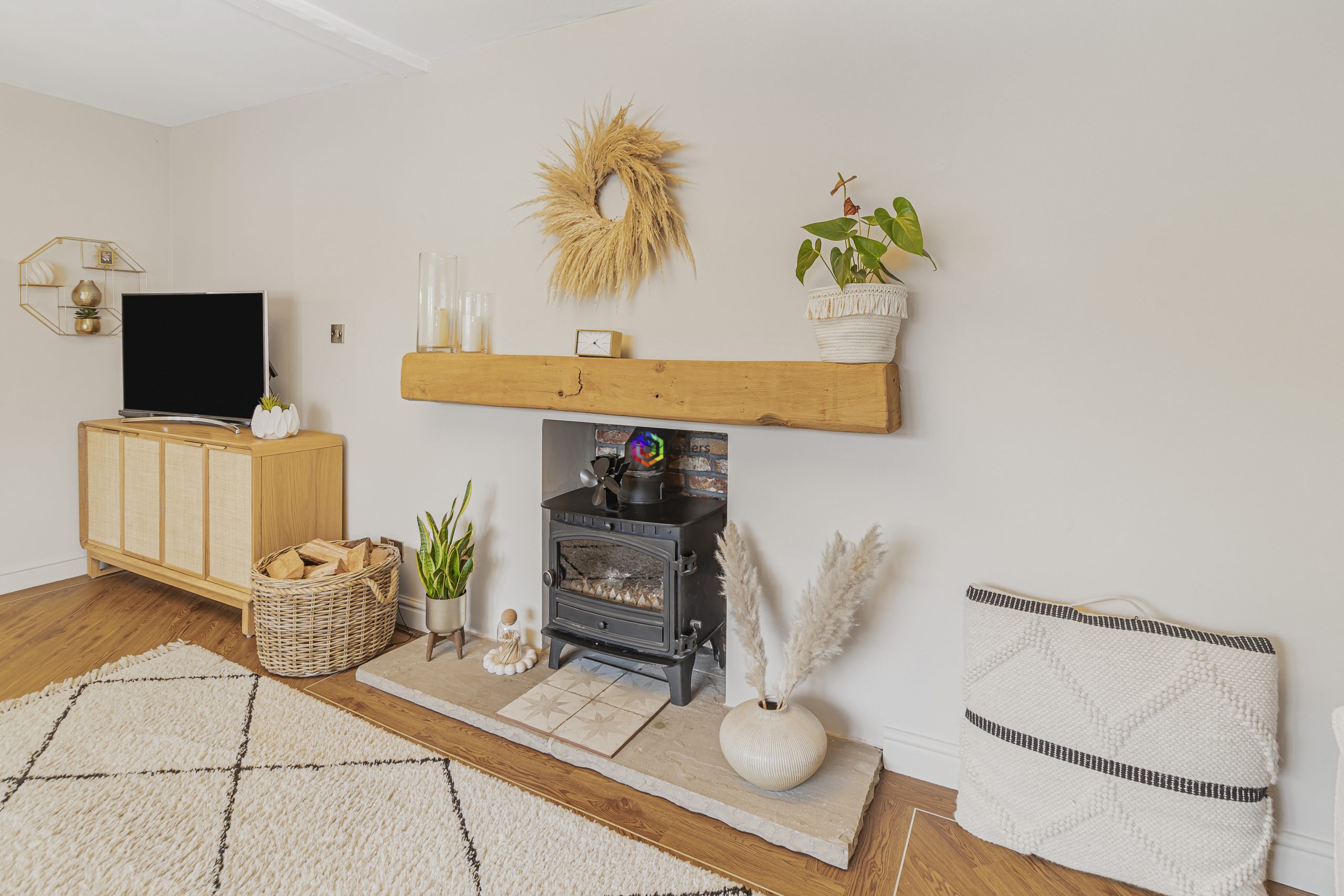 This generous lounge has a bay window overlooking the rear garden, open plan living to the kitchen / breakfast room and a gorgeous fireplace with multi-fuel burner providing that cosy winter warmth.