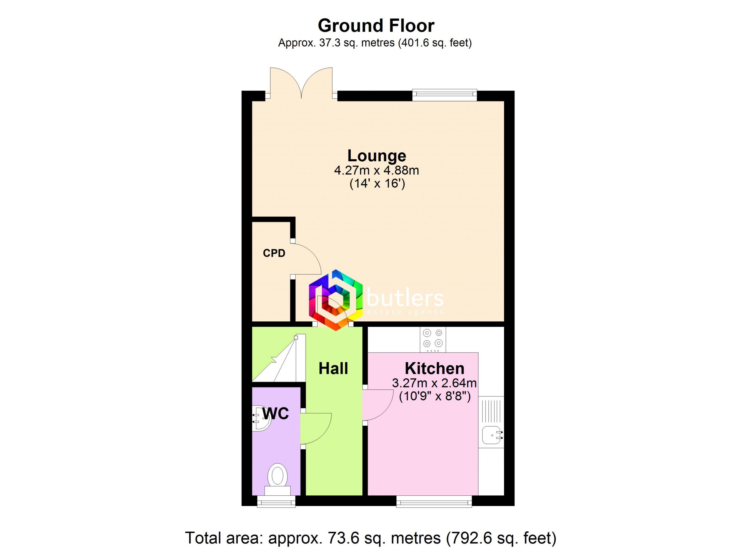 The front door leads into the Hall which provides access to the Kitchen, Lounge and Wc. Great area to stop dirty shoes treading into the house.