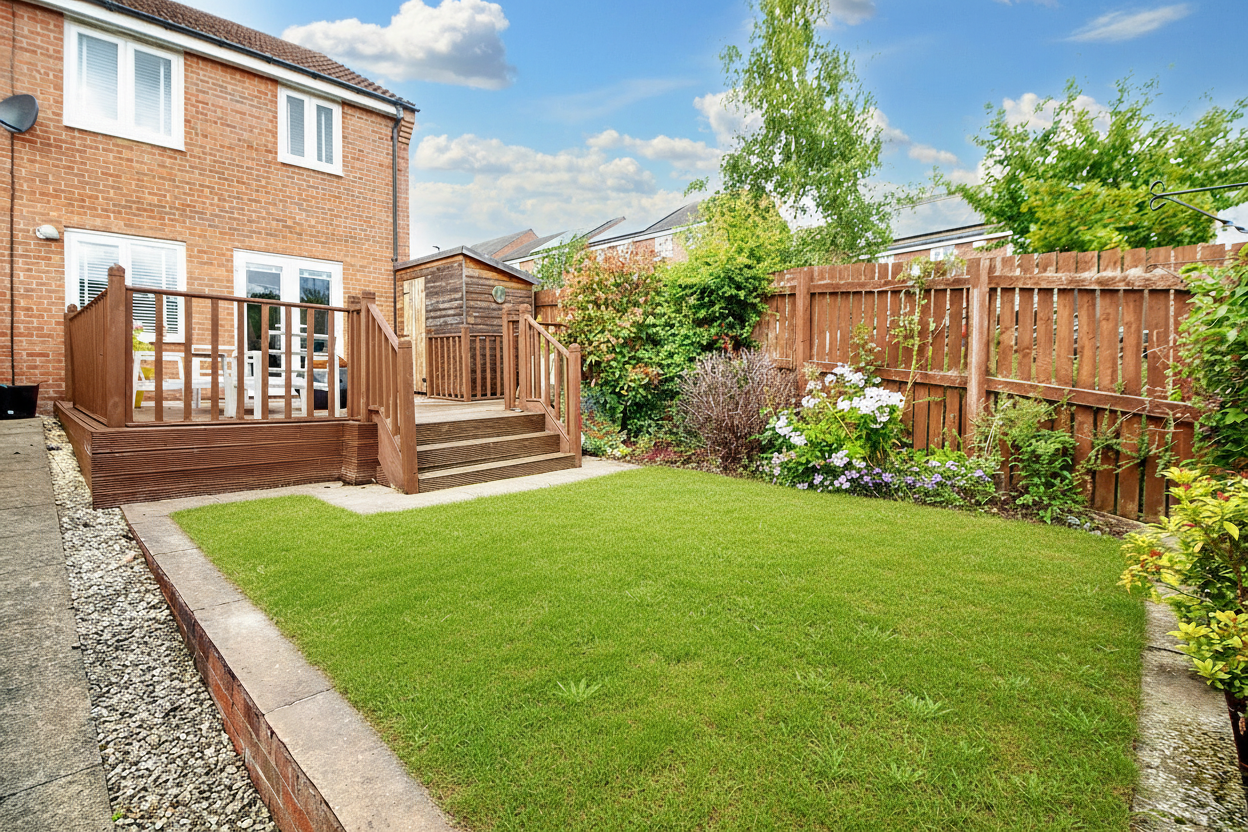• ENCLOSED REAR GARDEN WITH DECKED AREA