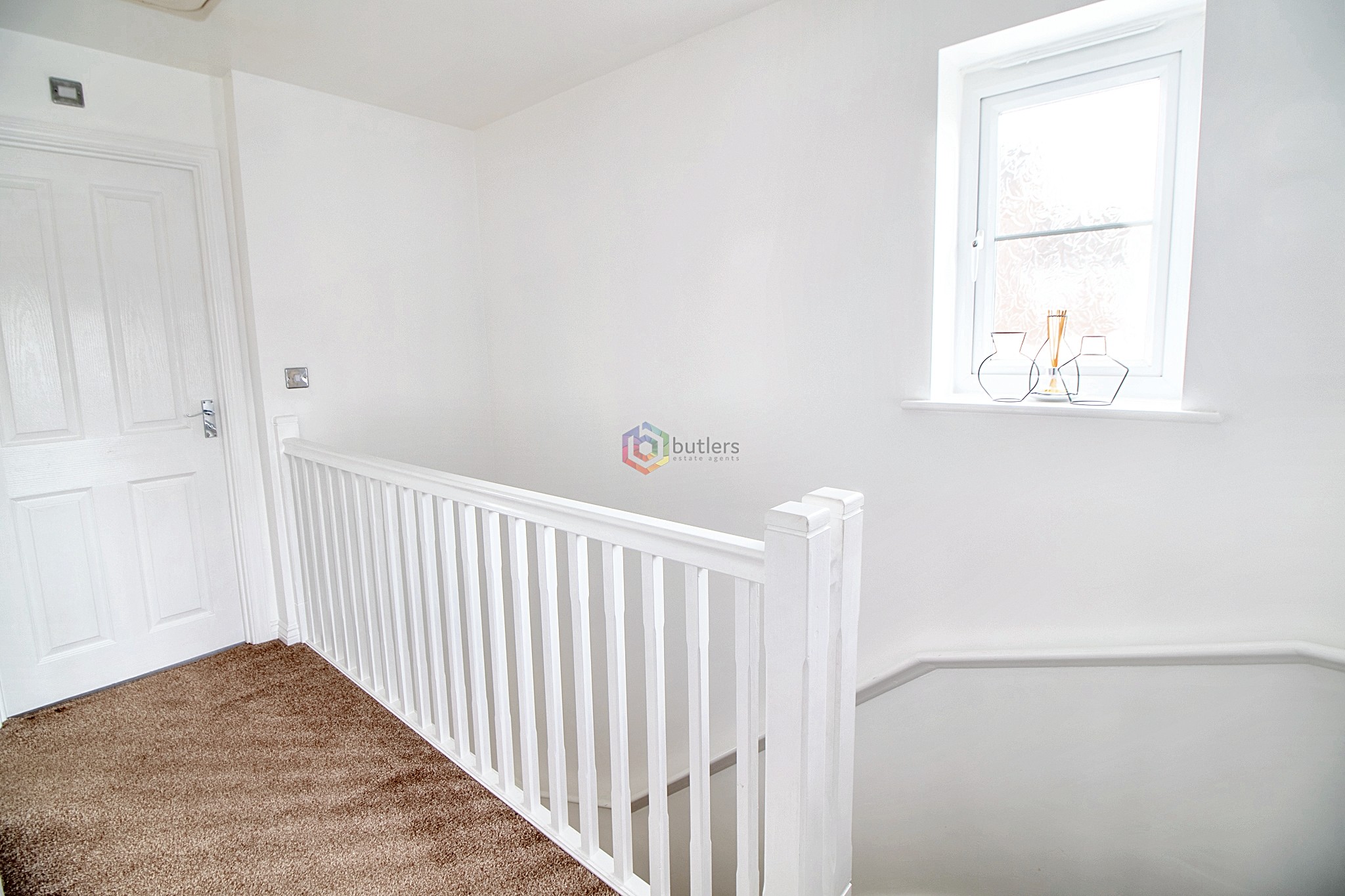 Decorated in bright modern whites and greys, the landing provides access to all bedrooms, the family bathroom. and the loft space.