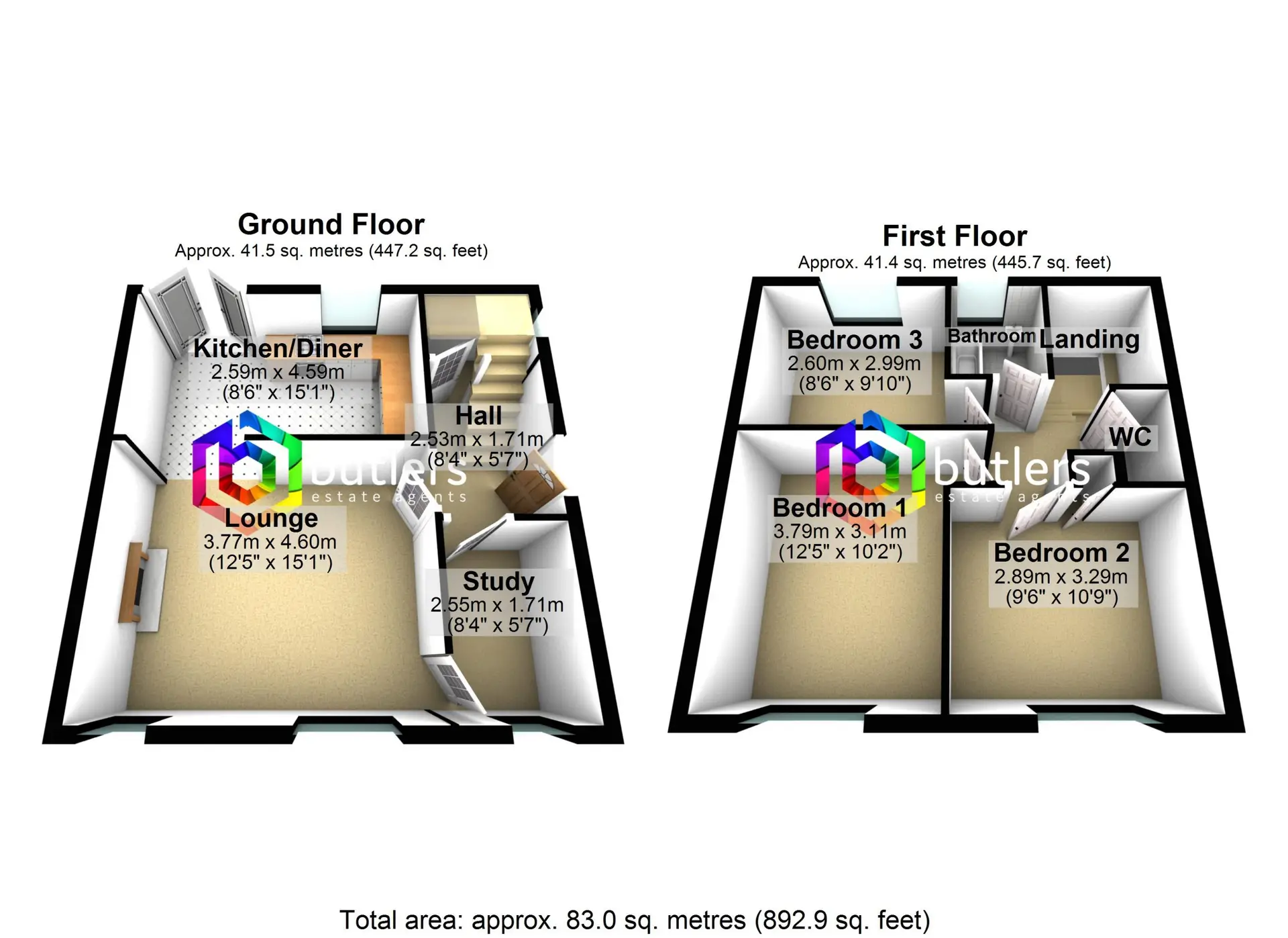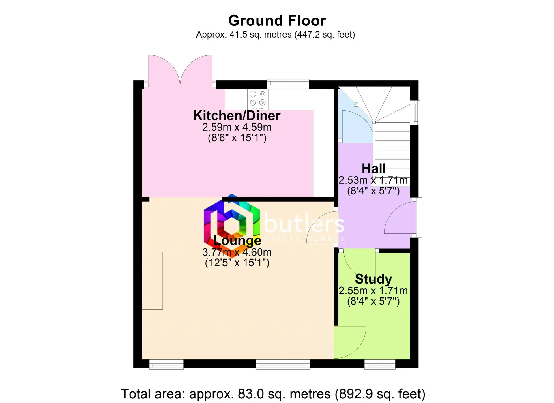 The Entrance door leads you into the hall which provides access to the Study and the Lounge. There is also an understairs cupboard which houses the boiler.