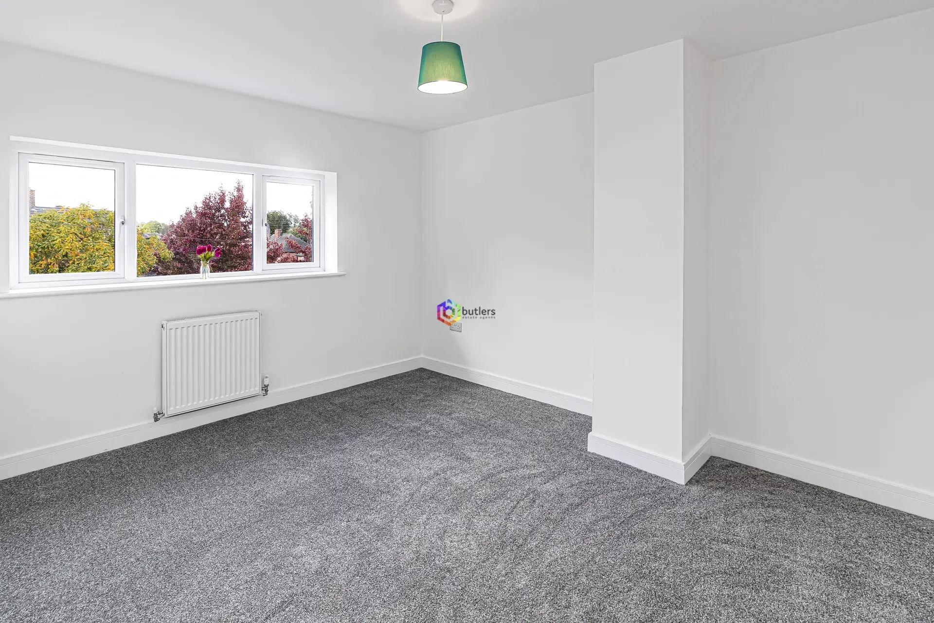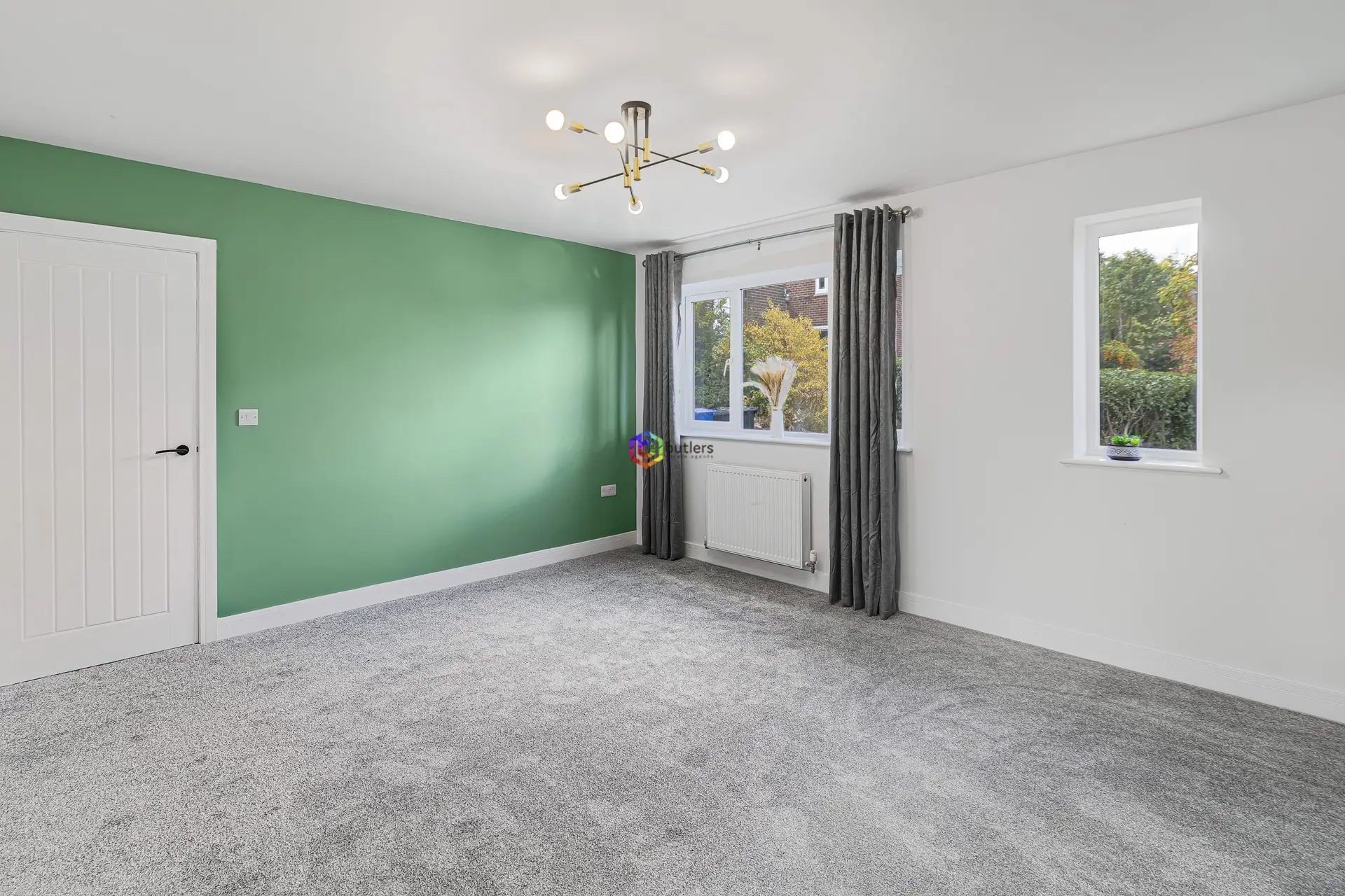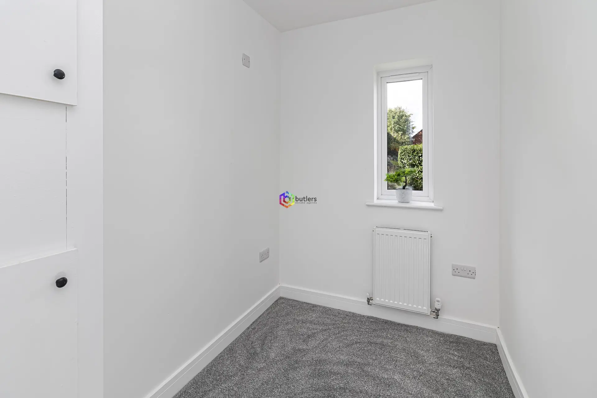 A bright modern room to the front of the house with a useful storage cupboard.