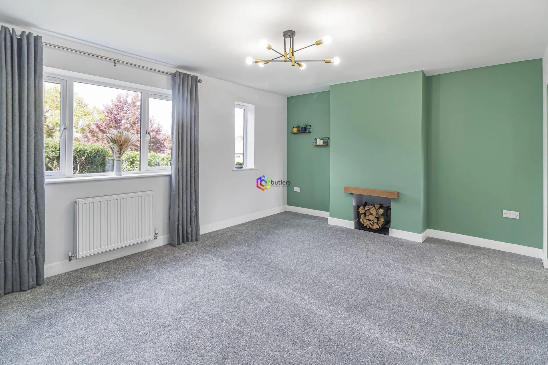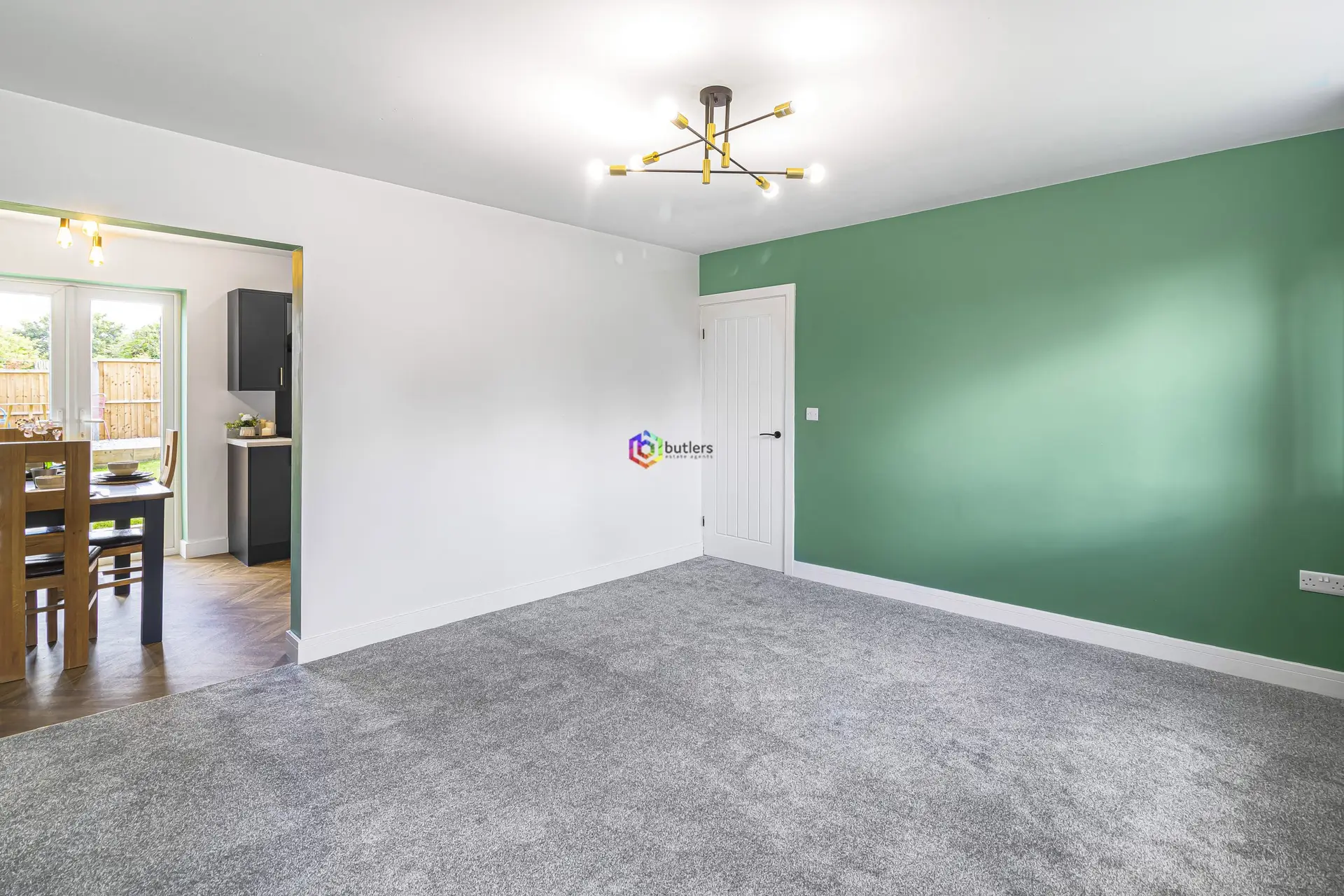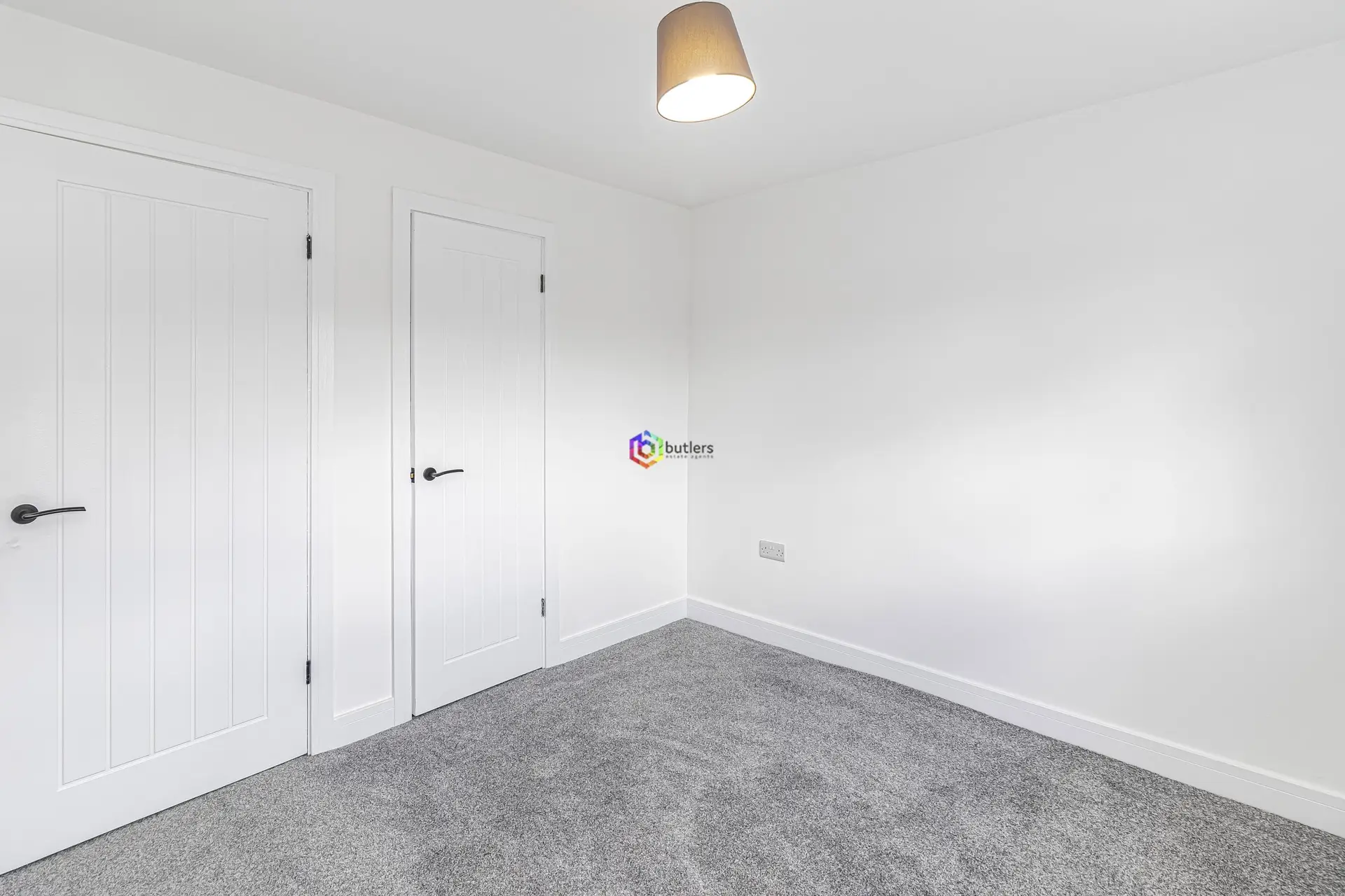 A bright modern room to the front of the house with a useful storage cupboard.