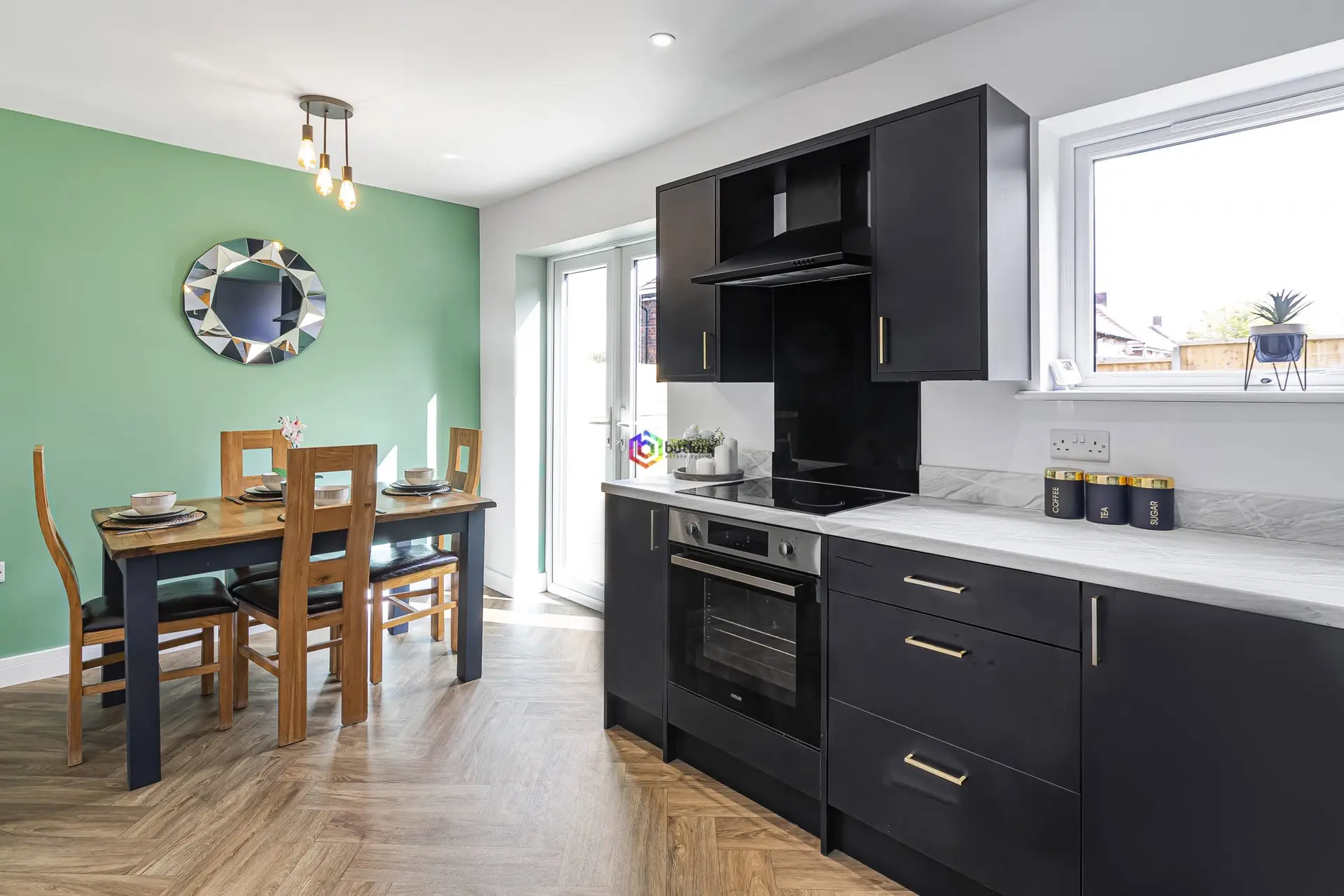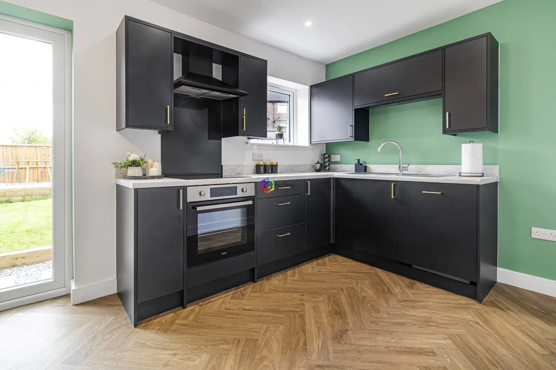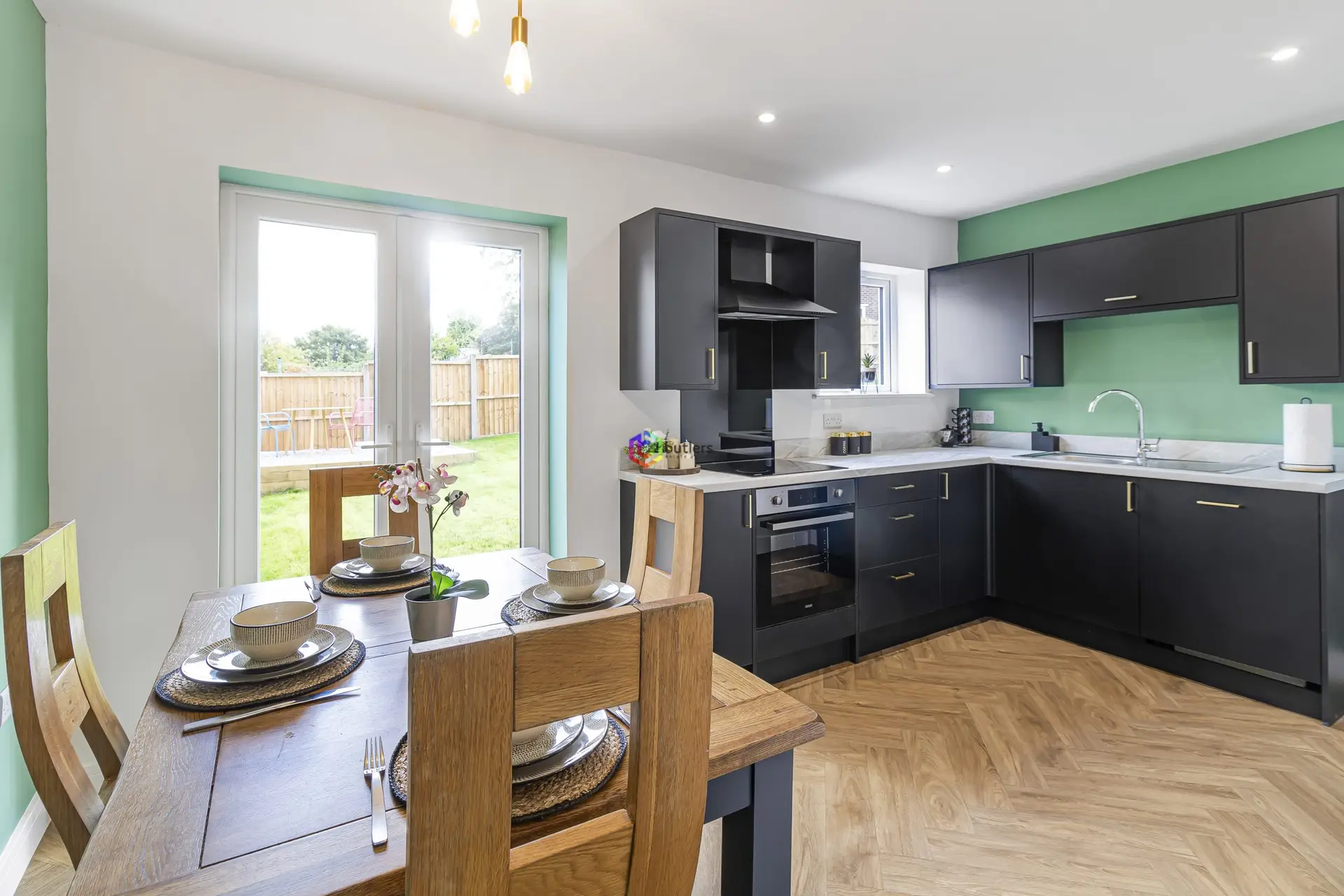 What an impressive space to entertain or enjoy family time as the heart of the home. The anthracite fitted kitchen offers a range of wall and floor-mounted units with a contrasting white work surface. There is a single electric oven, a ceramic hob and an extractor above. The sink is to the side of the window and the room has been cleverly designed to ensure the chef can communicate and feel socially connected whilst they prepare their culinary delights. The opposite end of the room offers plenty of space for a table and chair set in front of the twin UPVC glazed doors that lead out to the garden.