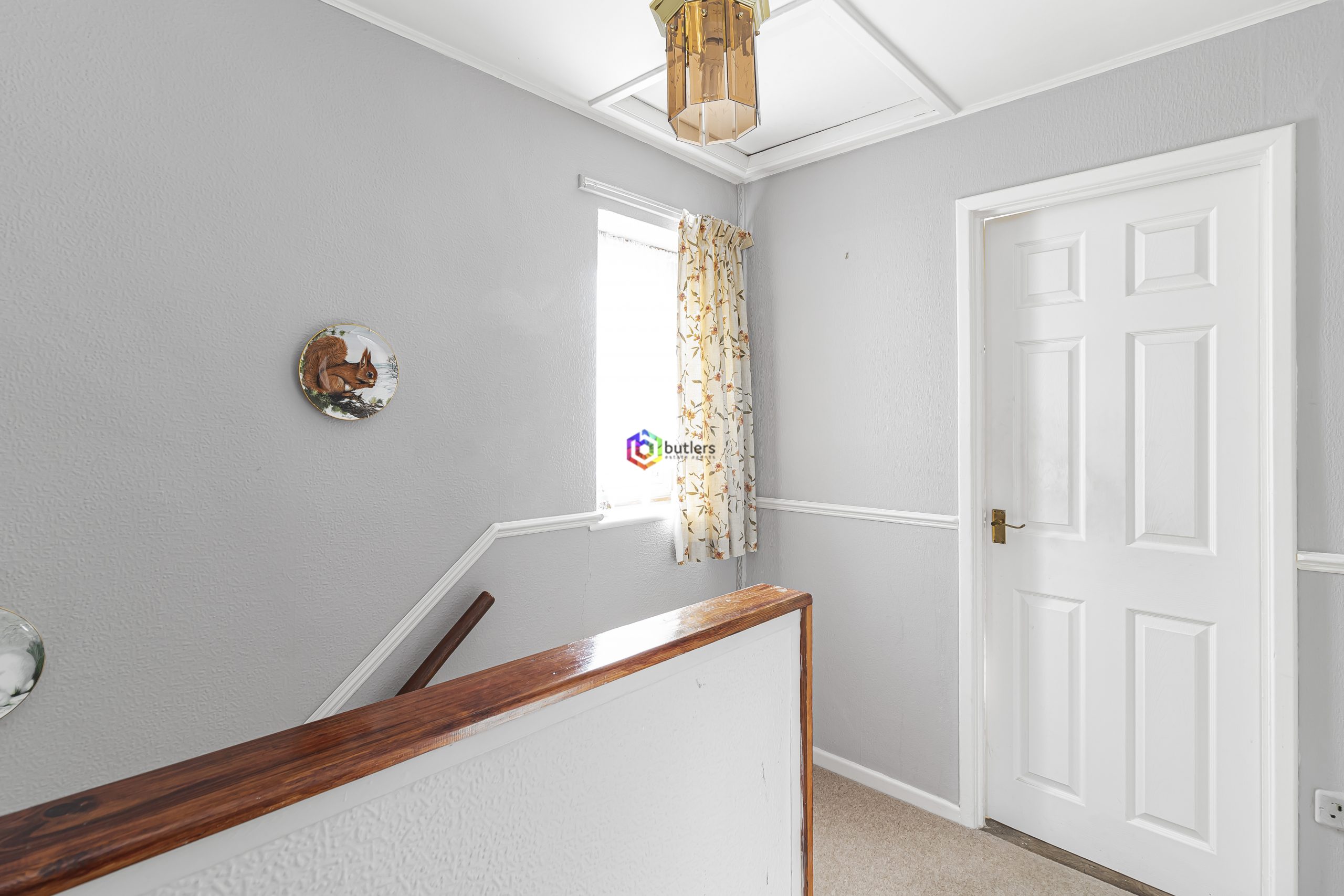 The front door leads into a traditional hallway with access to both the lounge and kitchen along with stairs to the first floor. There is a window to the side and a useful storage cupboard housing the meters.