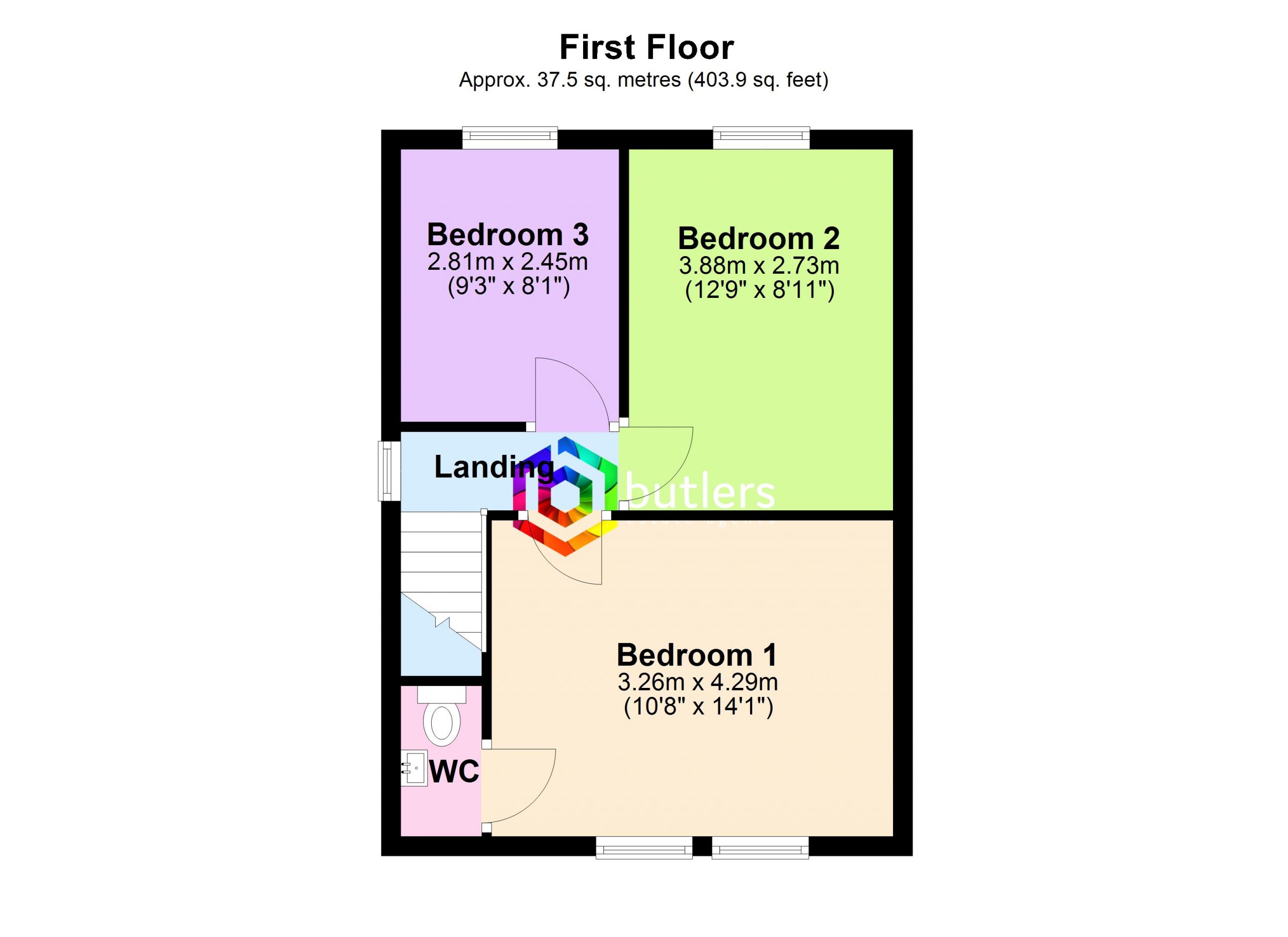 Bedroom Three 9' 3" x 8' 0" (2.81m x 2.45m)