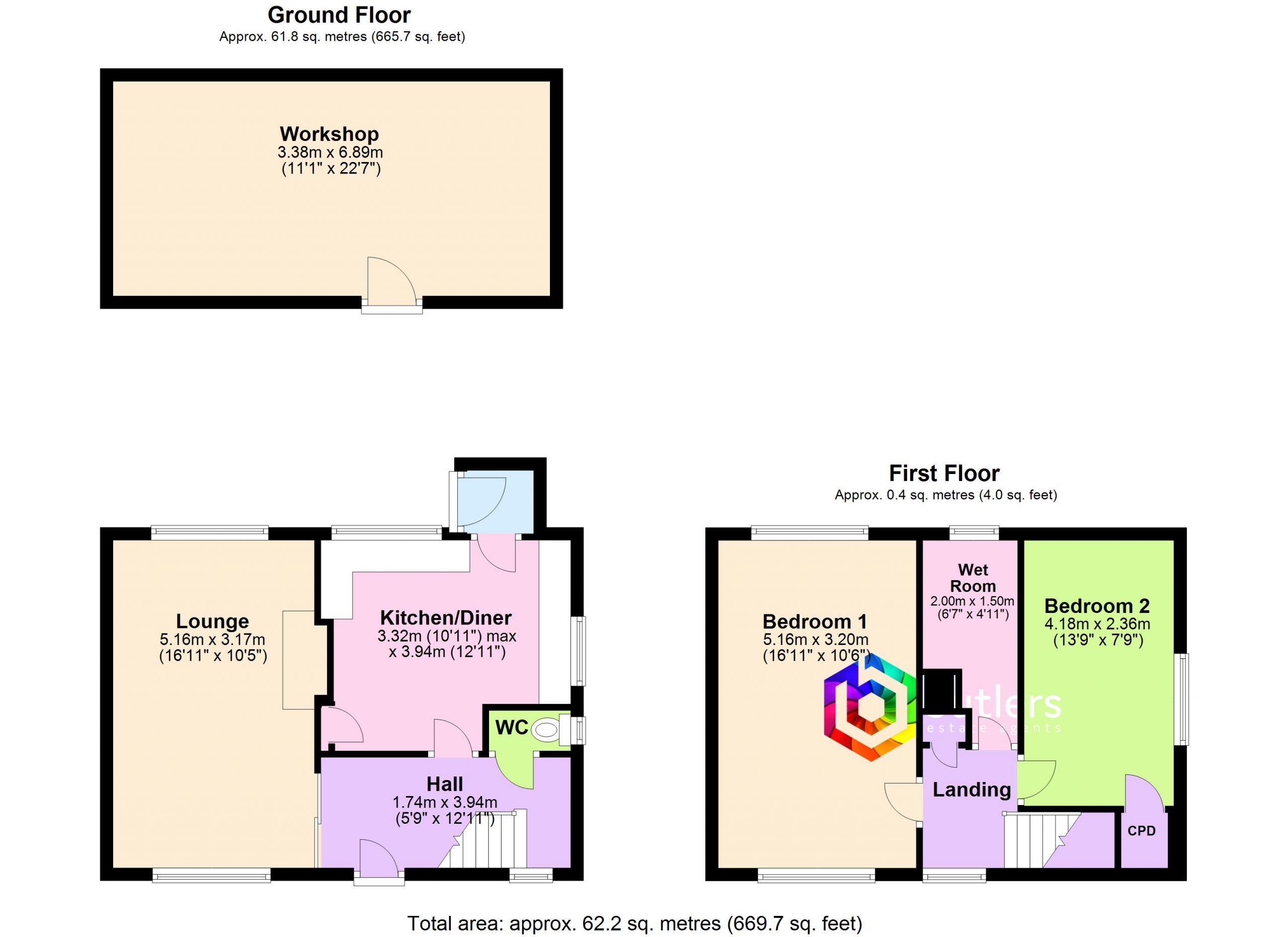 The landing provides access to both bedrooms and the Wet room. There is a useful storage cupboard.