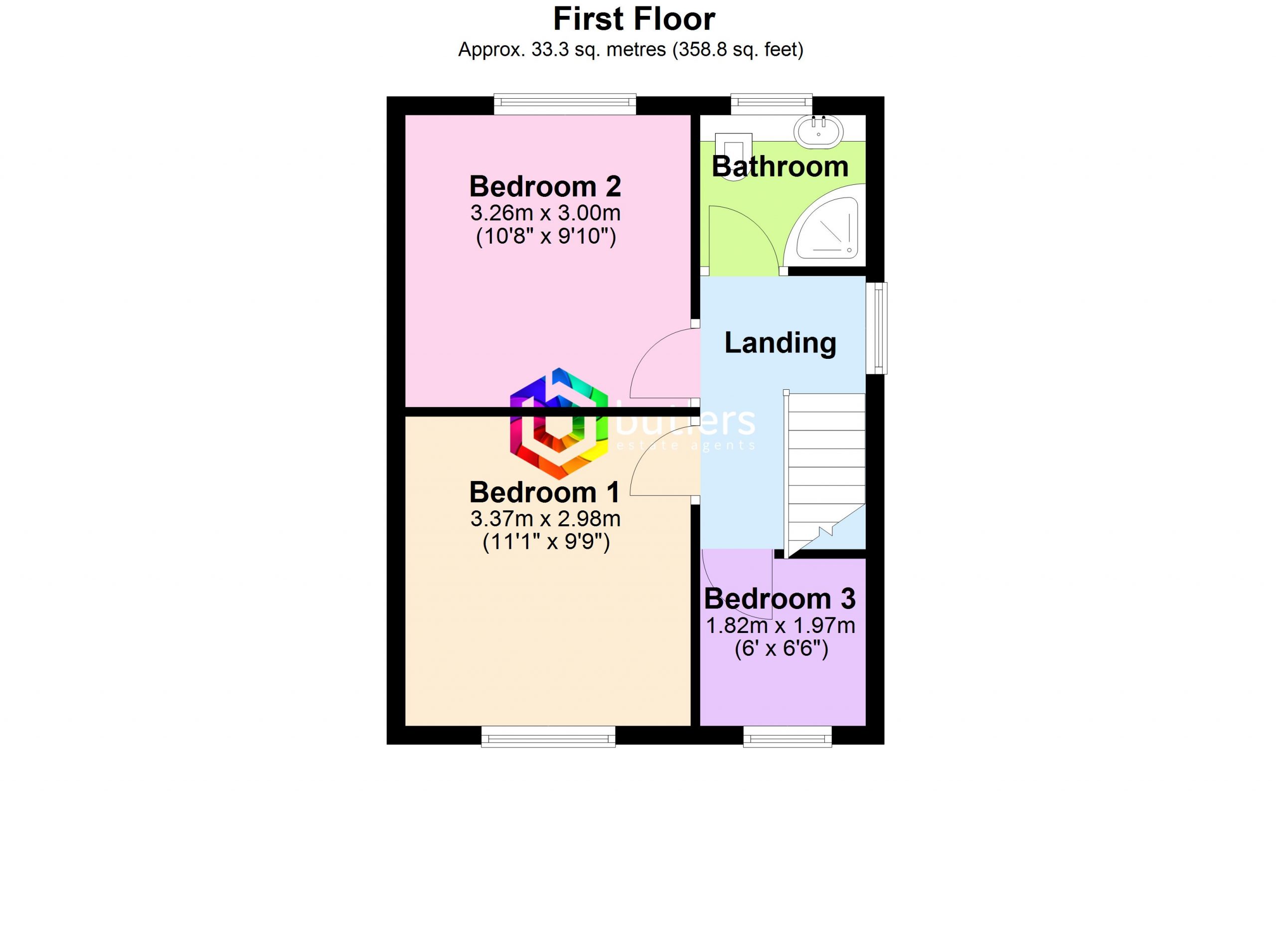 Bedroom Three 6' 0" x 6' 6" (1.82m x 1.97m)