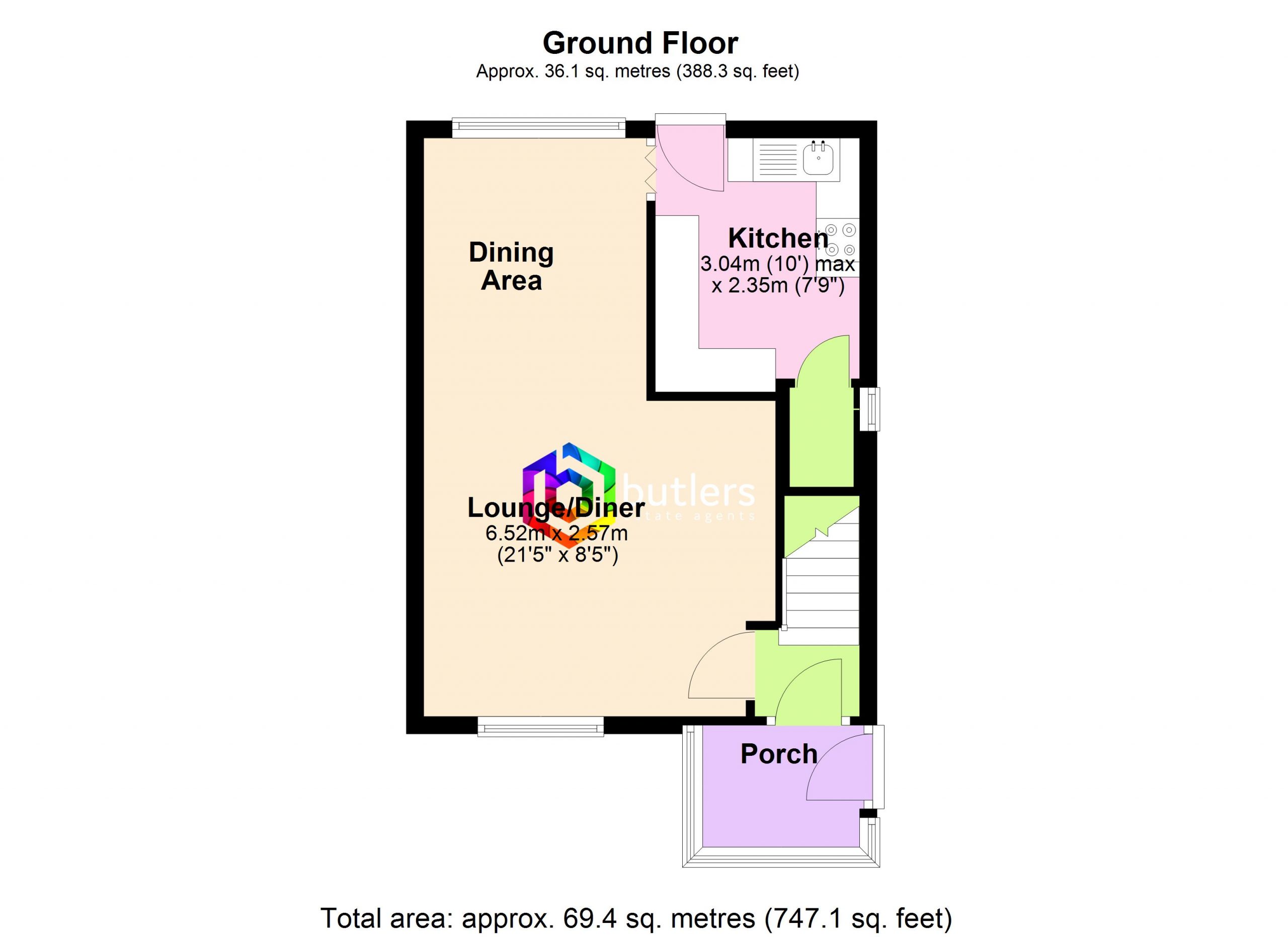 A further door leads you into the hallway which has access to the lounge and stairs to the first floor.