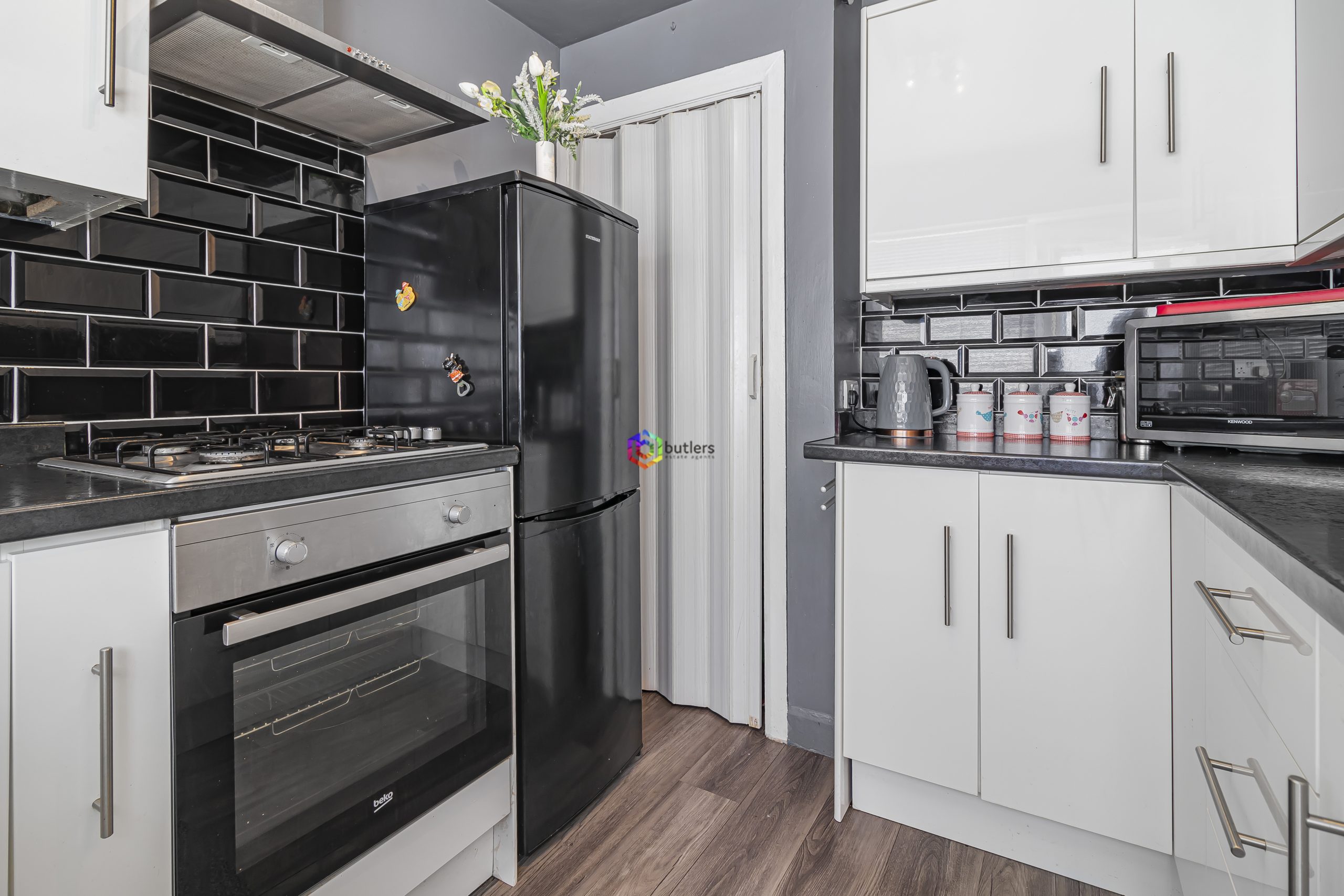Fitted with a range of wall and floor mounted units in a modern white with contrasting black surfaces. There is a Stainless Steel single electric oven with four burner gas hob and extractor above, space for a dishwasher and the sink located beneath the rear window overlooking the garden. There is a traditional under stairs pantry area which houses the meters. A practical space being adjacent to the dining room offers many opportunities.
