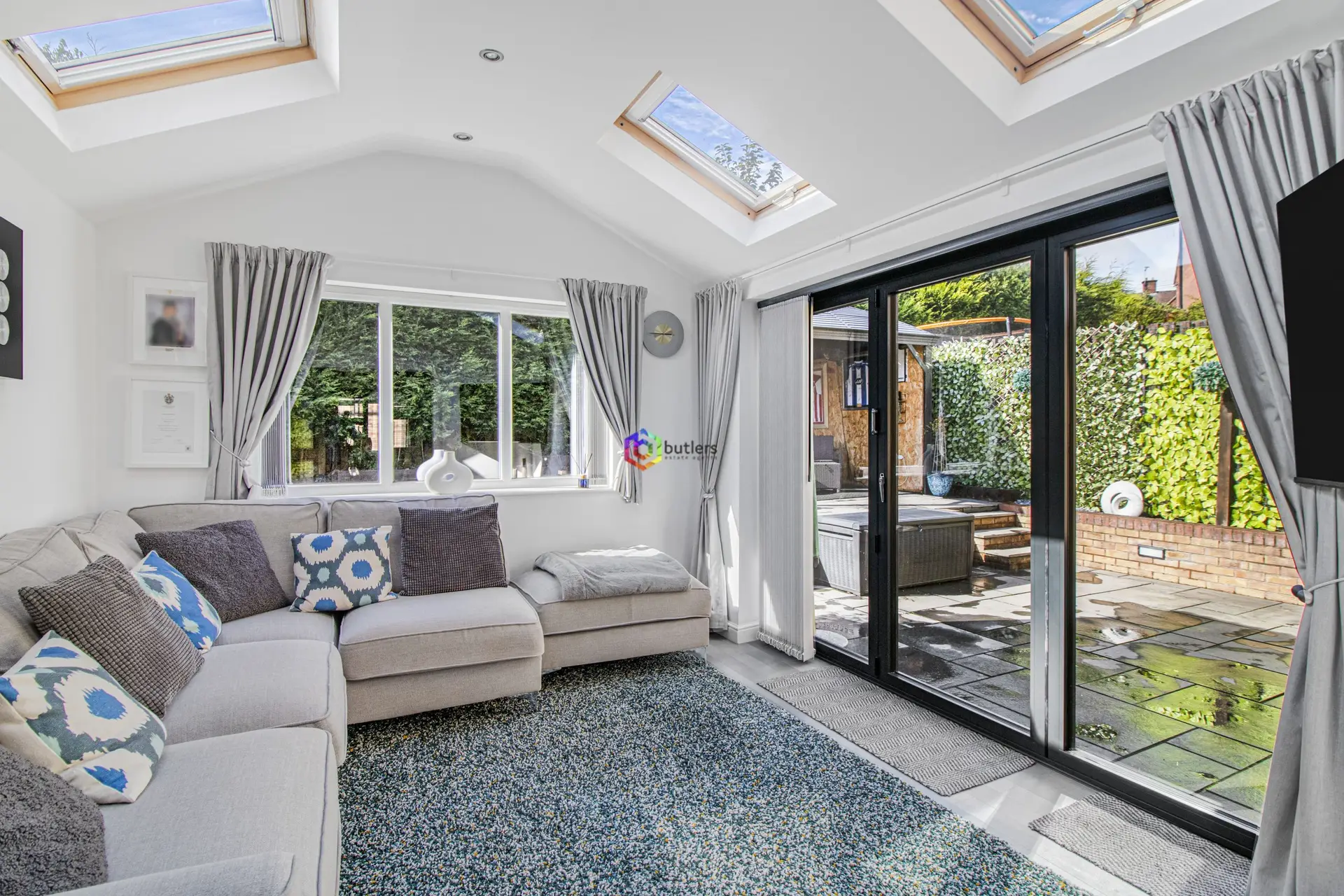 The garden room is formed from a single storey extension to the rear which has four velux windows and large bi-folding doors which along with the window to the rear light up the room. It is a lovely space to relax and take in the rear garden.