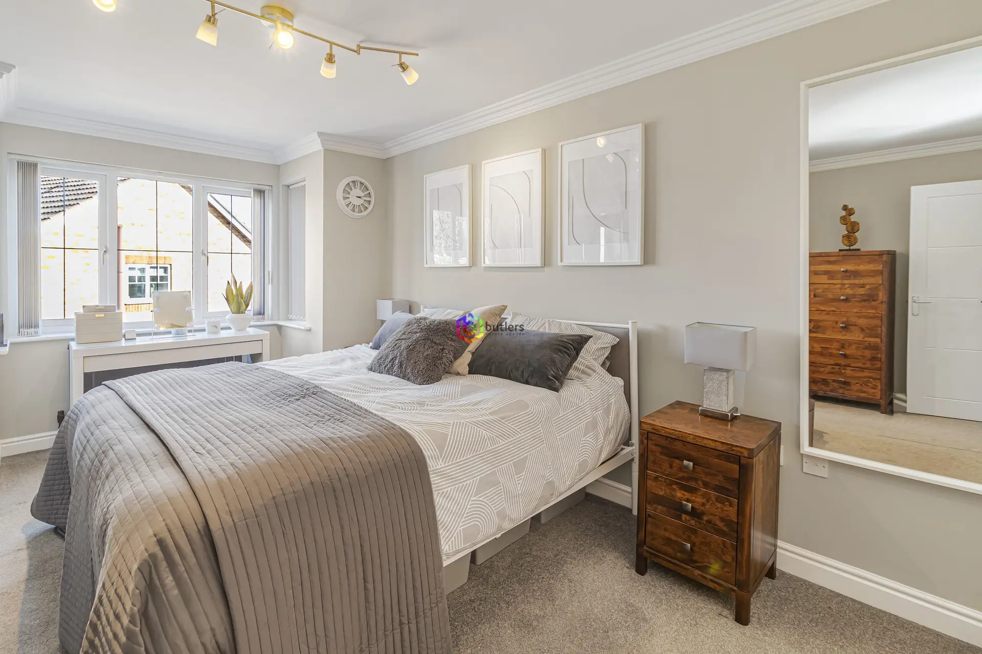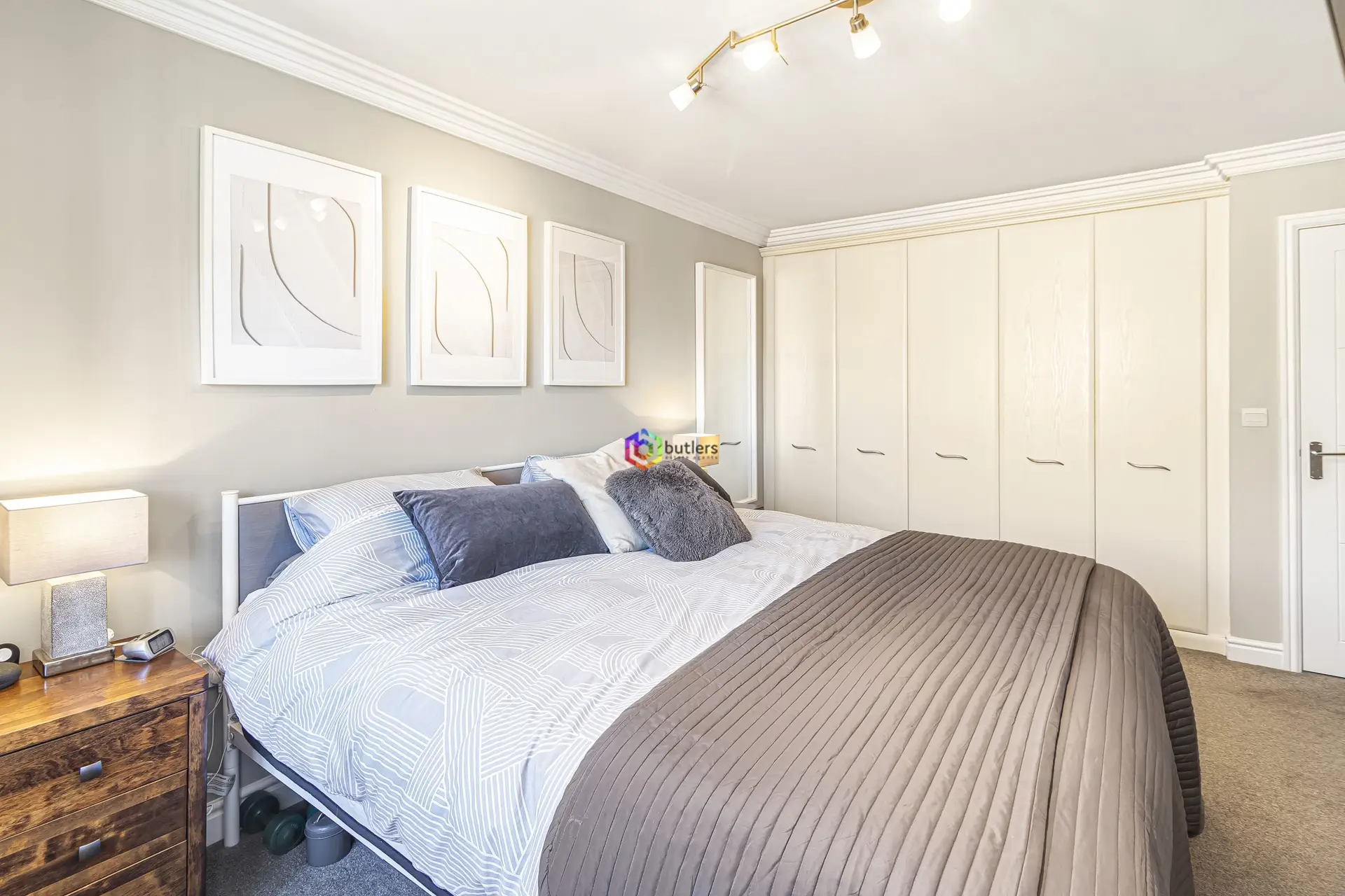 A good-sized double bedroom with a window to the front and fitted wardrobes.